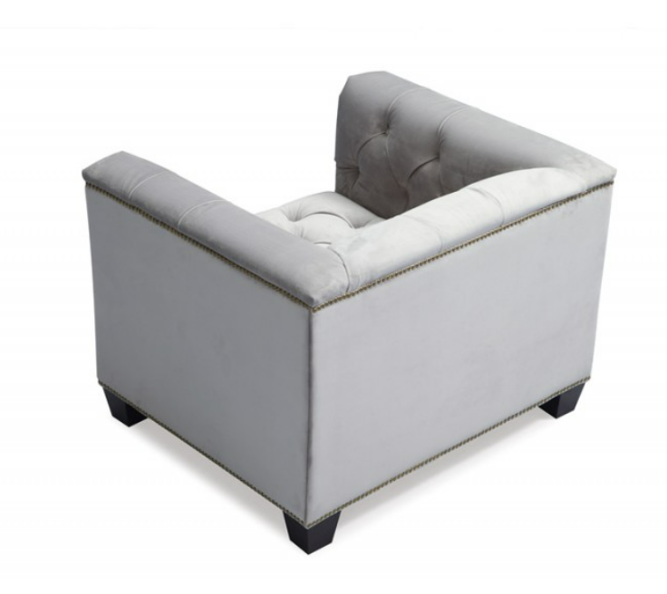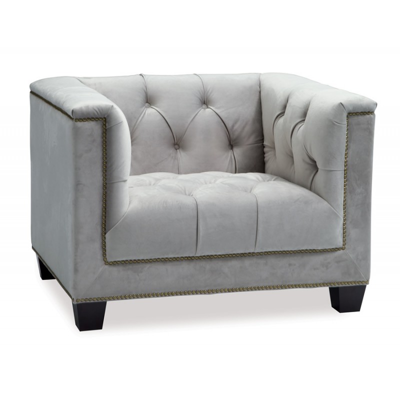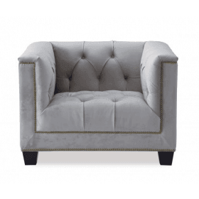 Essex grey velvet sofa with black legs and Brass nail studding. Matching armchair available