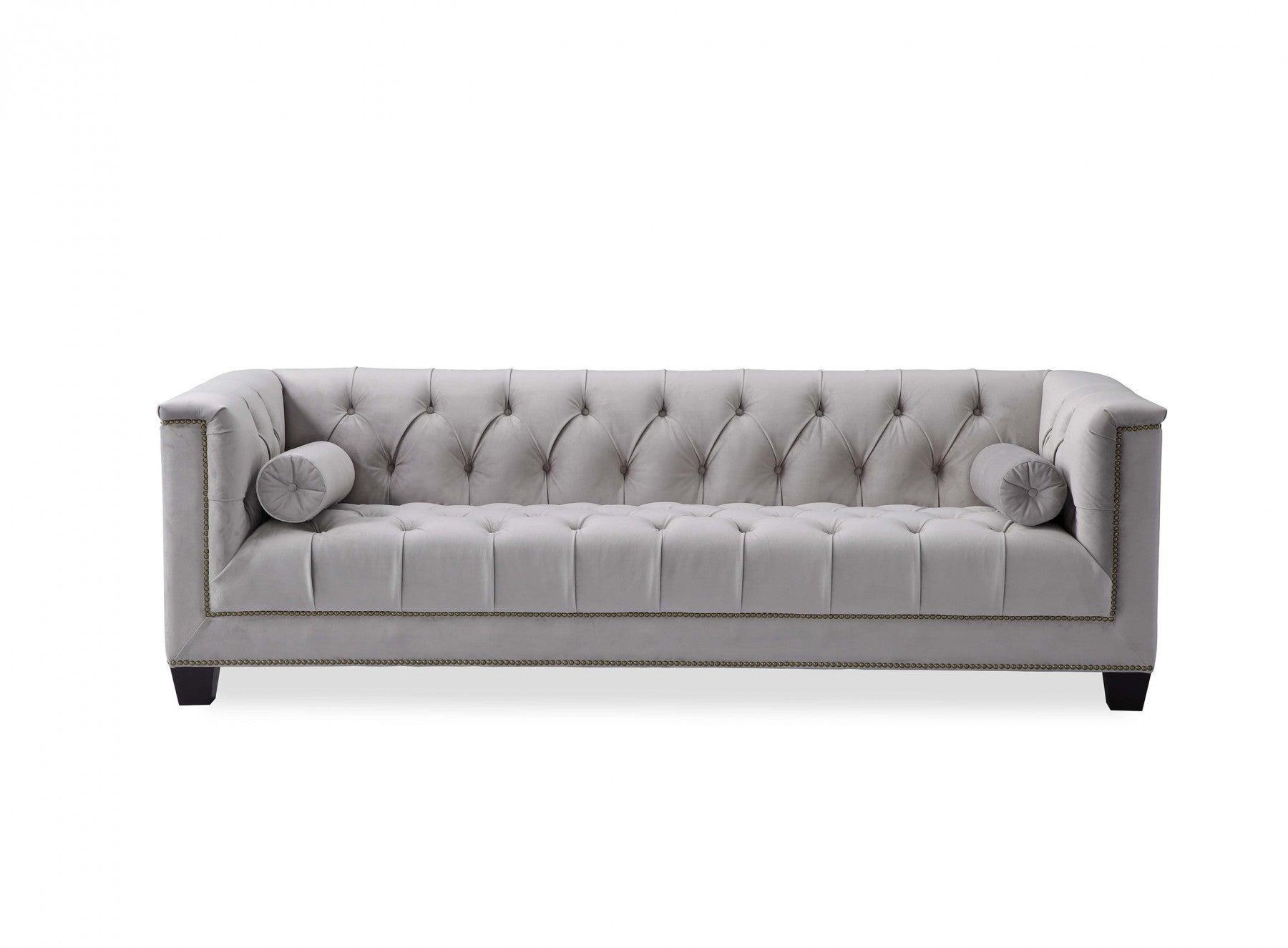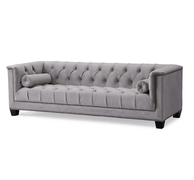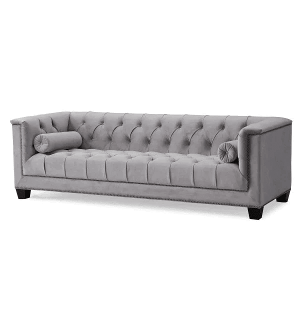 Essex Grey Velvet Brass Sofa 230cm