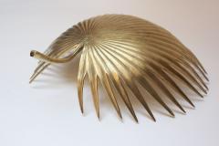 Organic form hand-cast brass palm leaf bowl or catchall. A large, hefty statement piece in solid metal with brass finish. Luxurious centerpiece that is durable and intended for heavy use, yet retains a delicate elegance in its form.