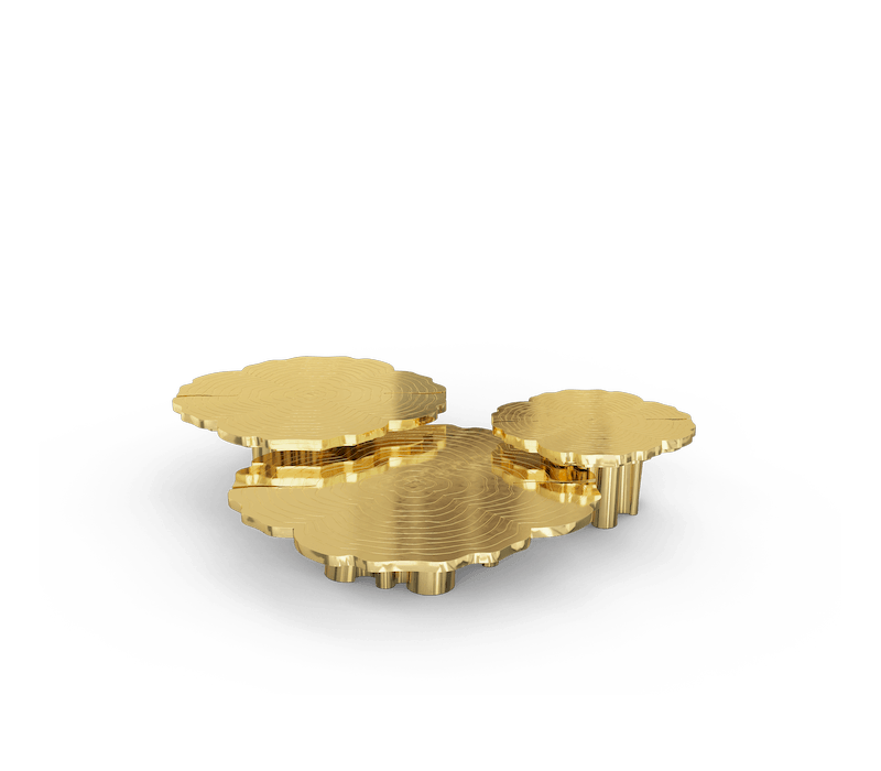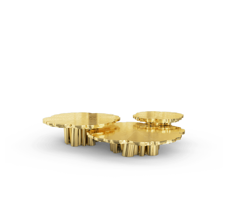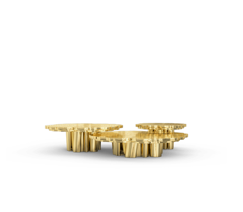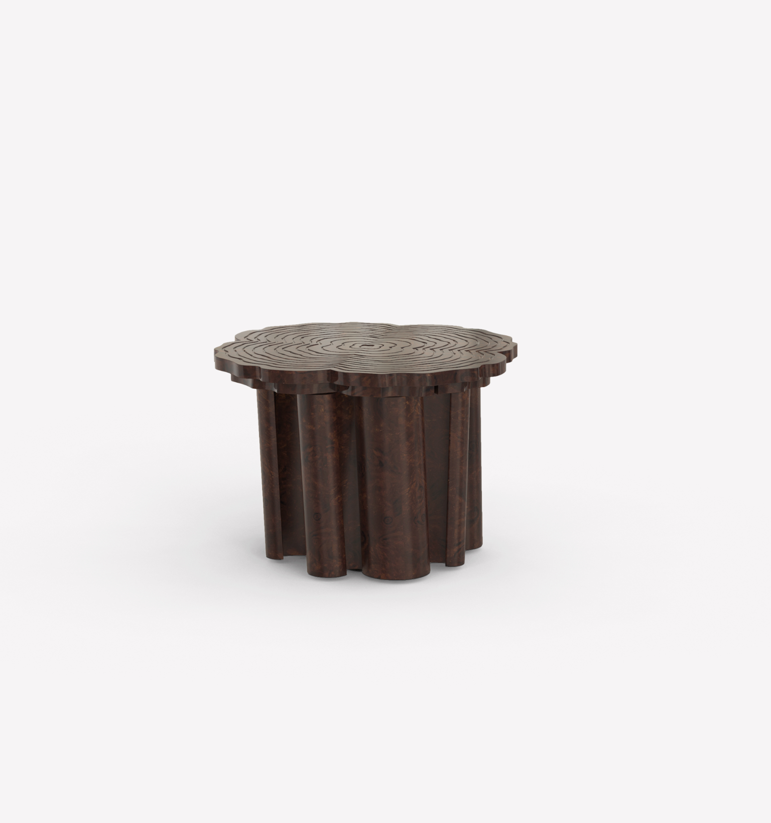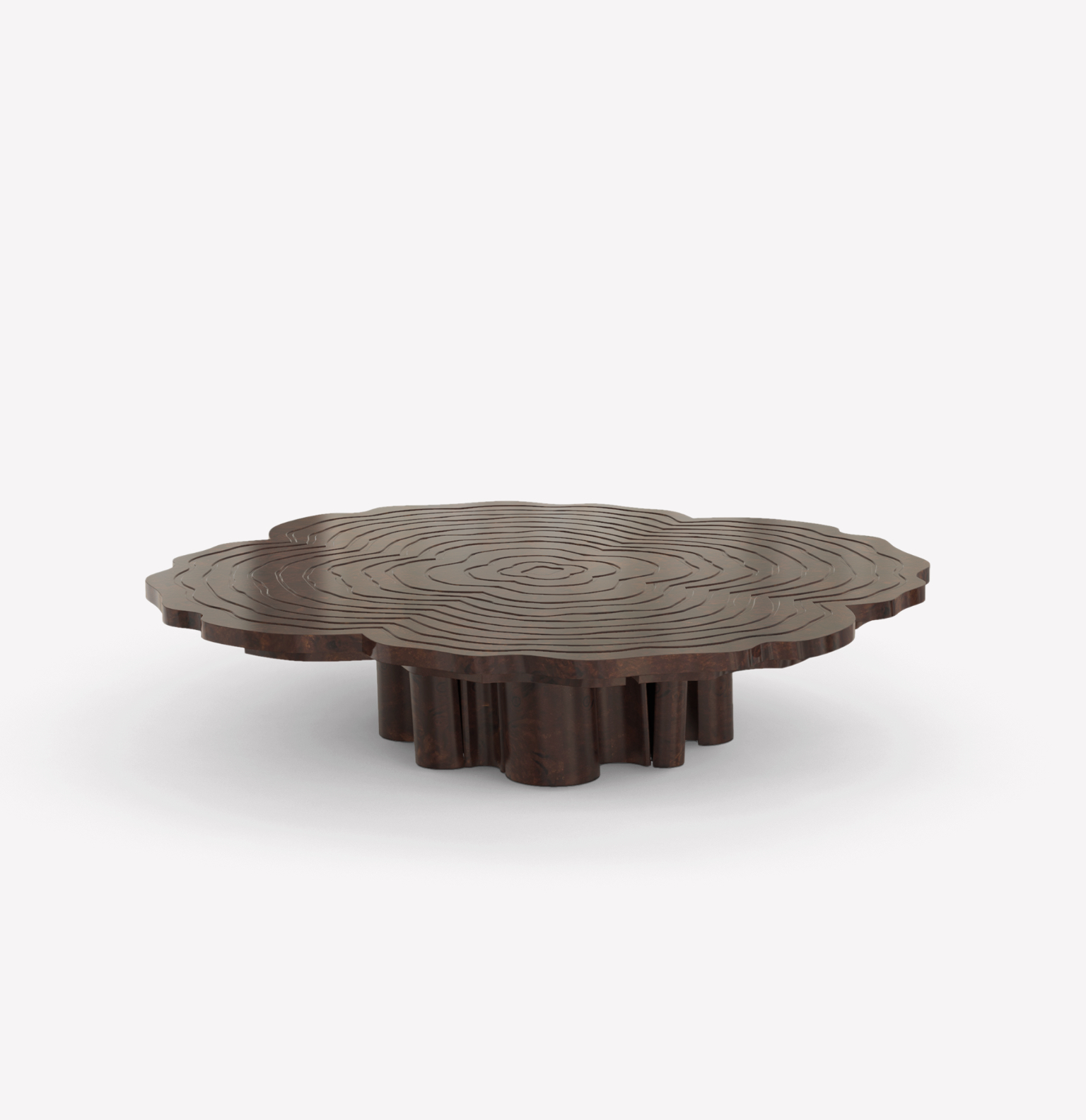 Fortuna Coffee table in Dark walnut finish set of 3 with all structure of each table in walnut wood . Also available in gold, chrome, antique brass finish.