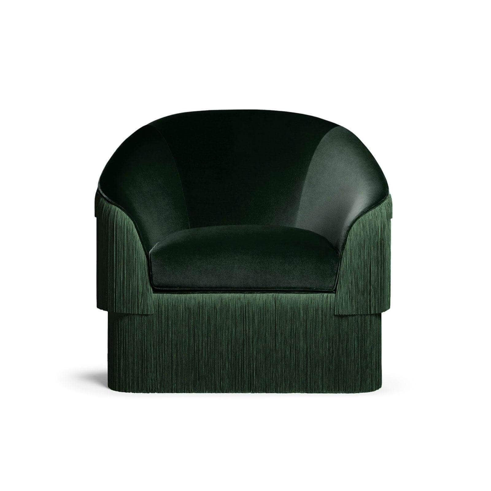 Fringe Dark Green Velvet Armchair Sofa