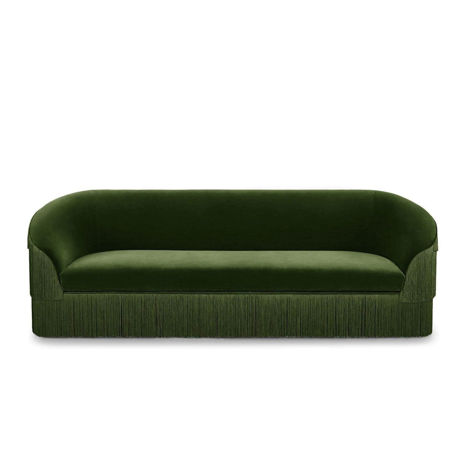 • Fringe Dark Green Velvet Armchair Sofa