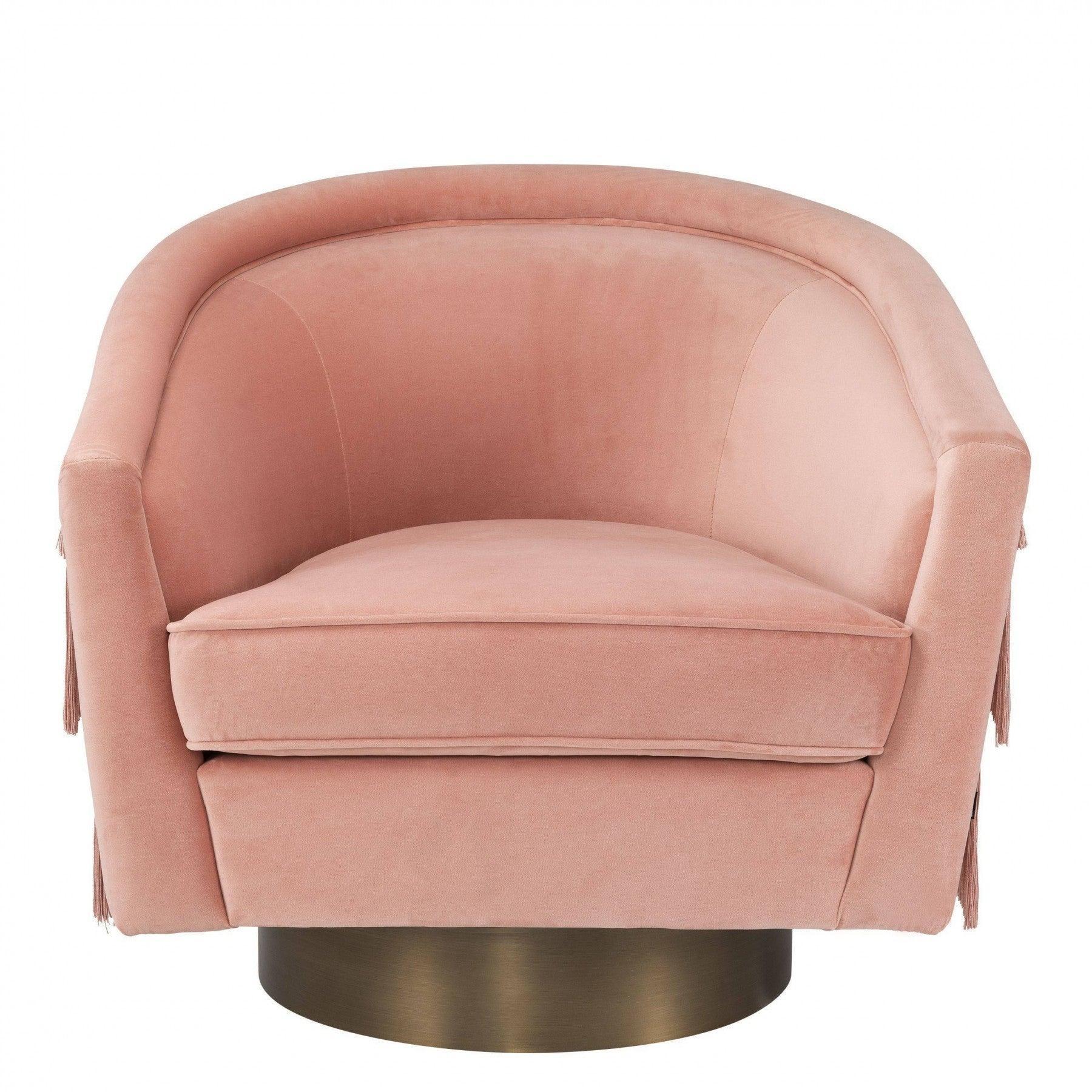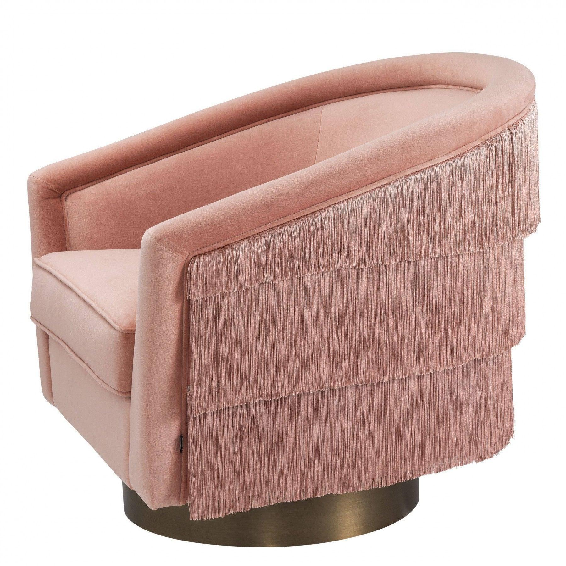 • Fringe Nude velvet armchair with Burnished Brass swivel base