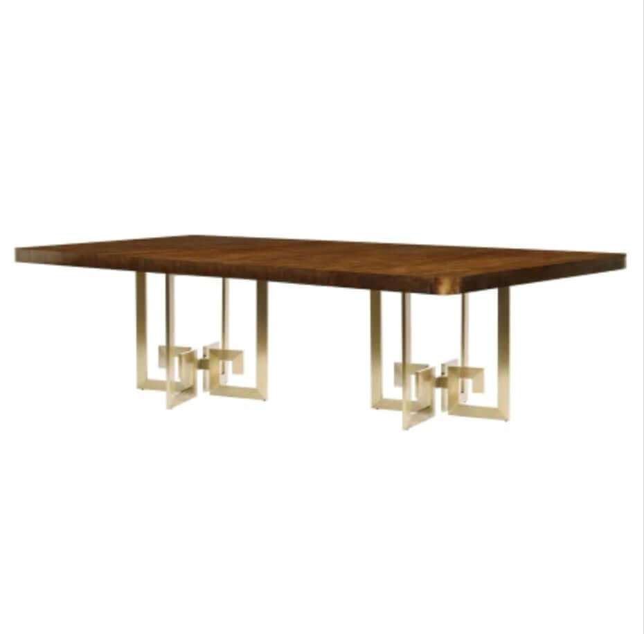 Greek Key Dining Table has a 150cm width that can fit in 4 to 6 people. The design of the brushed gold base allows more space for the foot and the wooden top provides steadiness when eating. The Gallery Greek Key Dining Table by Gallery Home is the perfect addition for any social event or family gathering.