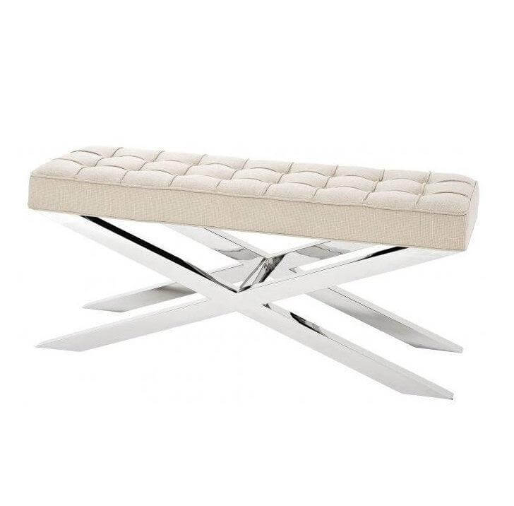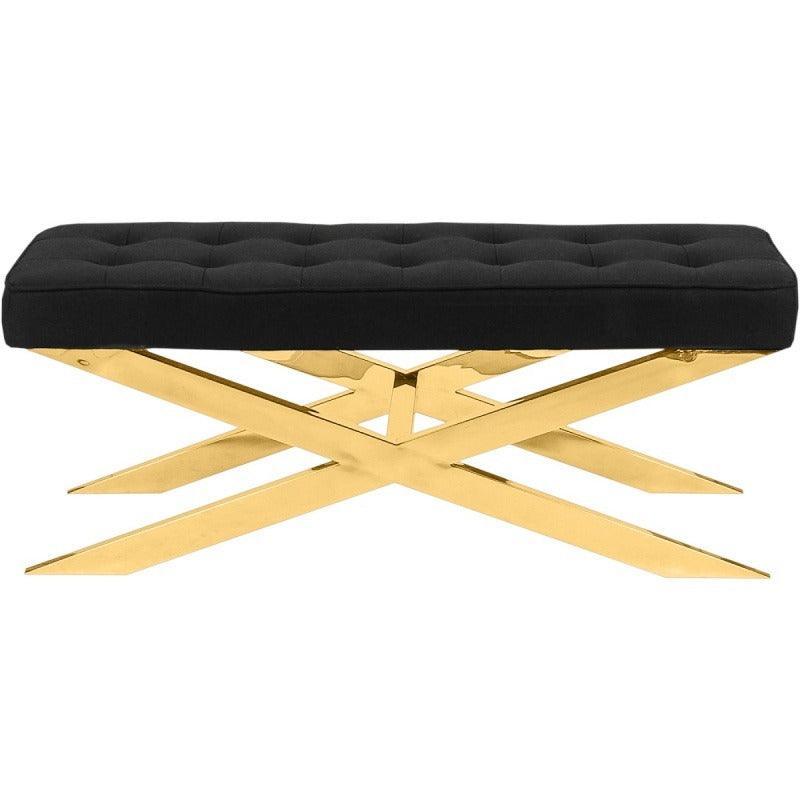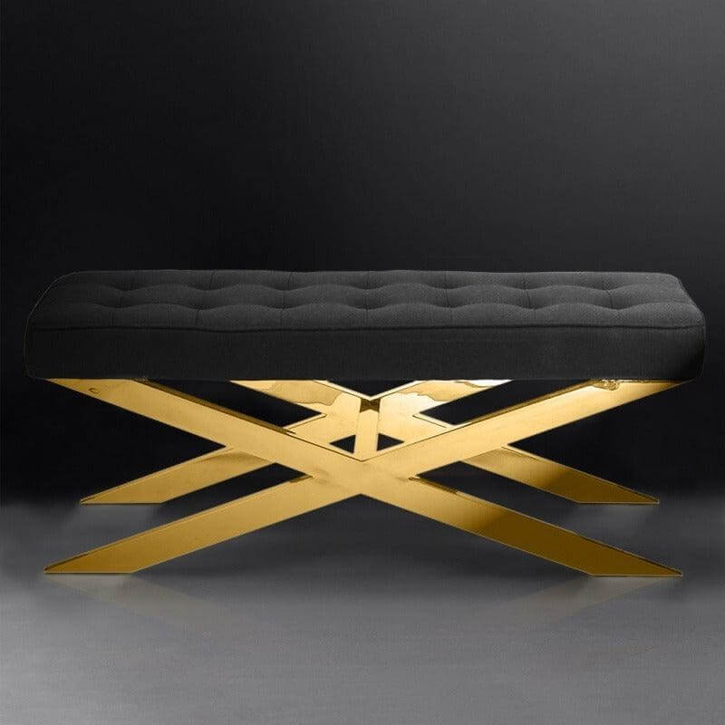 An essential, functional and trendy decorative element, the Gansevoort bench (ottoman) will be the alluring asset of your home ! With its contemporary design, its clean lines, its padded seat and its golden stainless steel structure, it will add that little extra touch to your living room, your entrance or your bedroom.