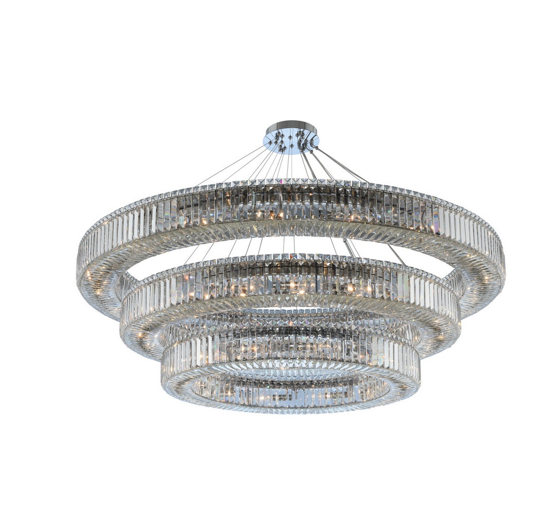 Gatsby Collection features timeless single and multiple tier polished Nickel with exquisite pendants of clear crystal baguette and squares.
