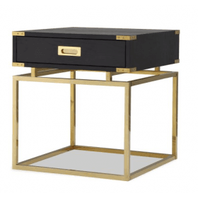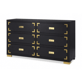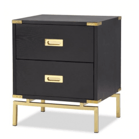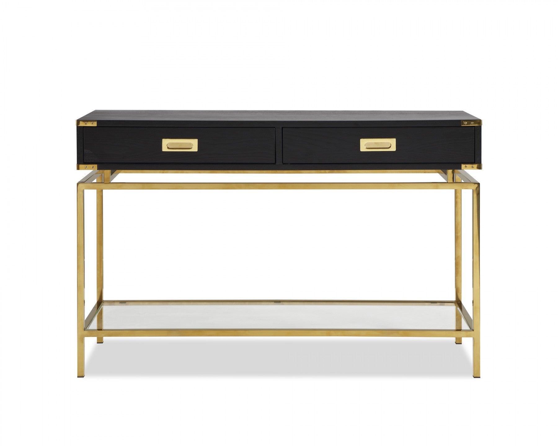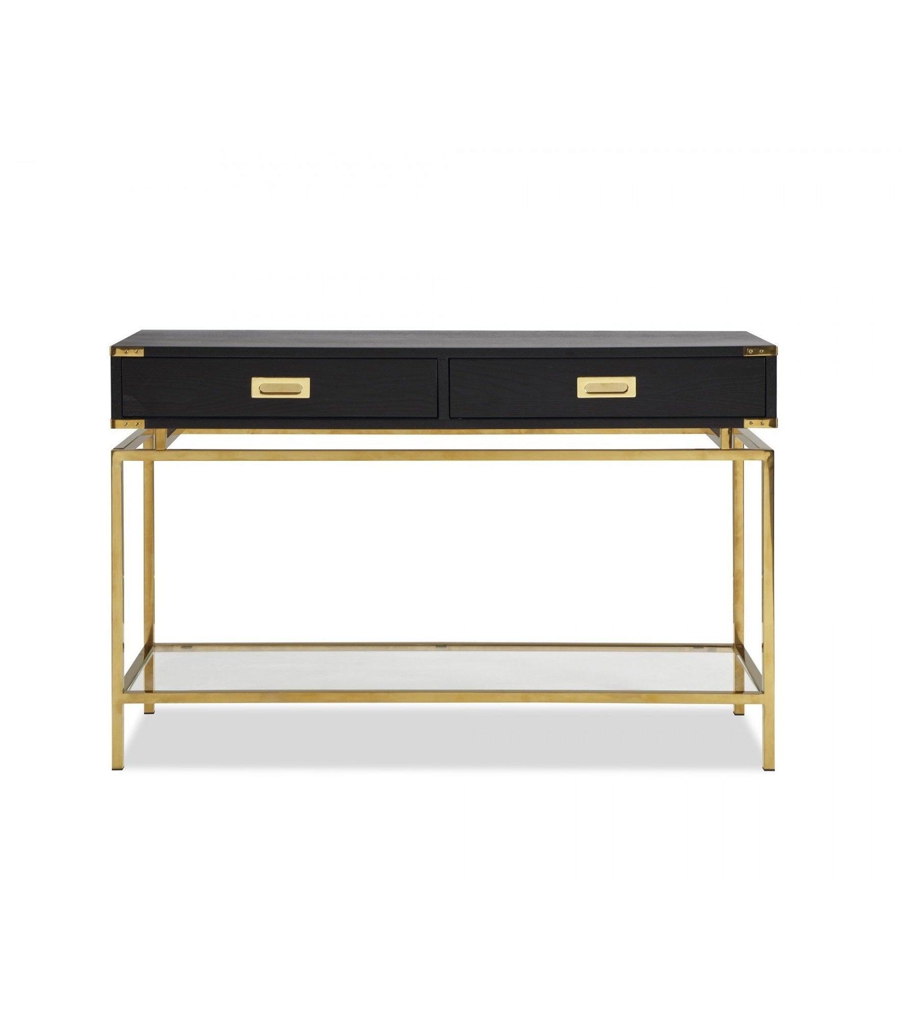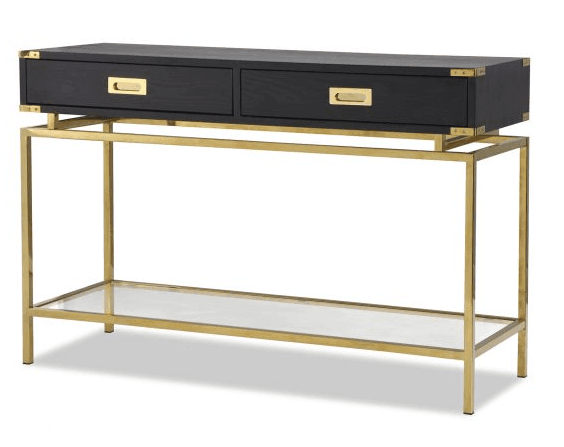 Canton black ash veneer console table with polished brass legs and handles. Matching designs available in this collection.