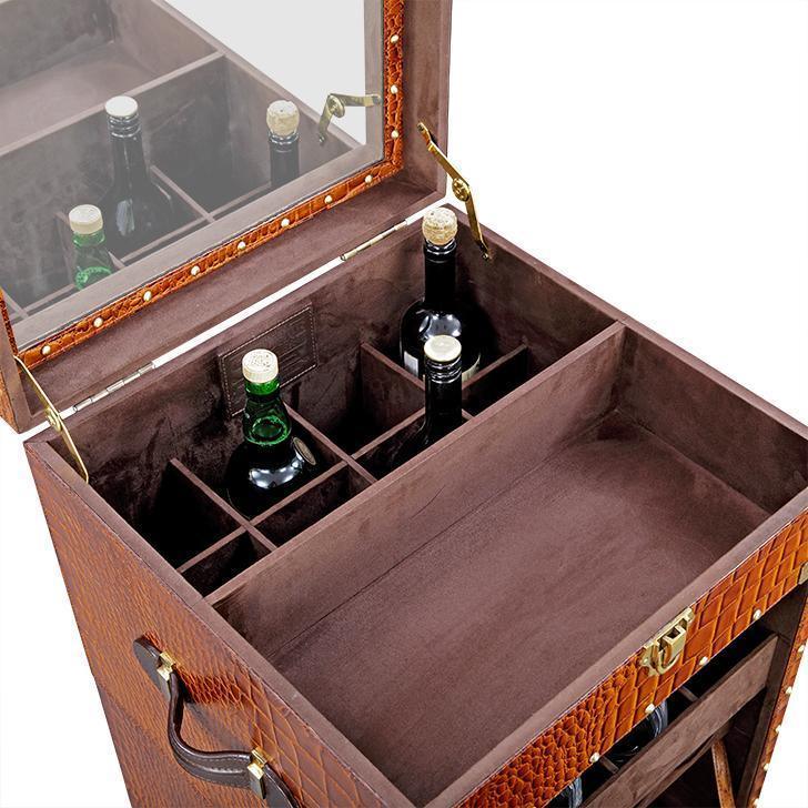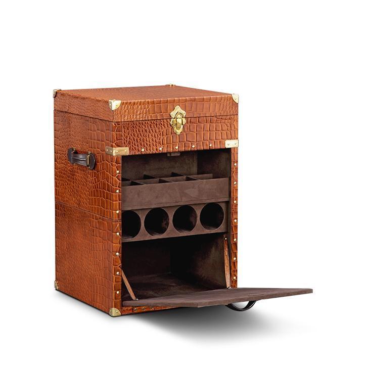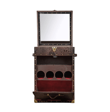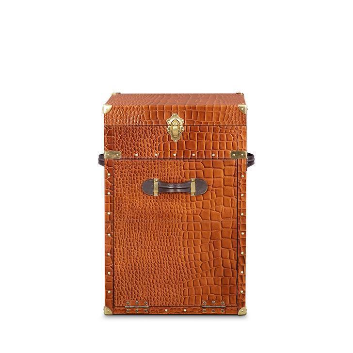 Gentlemens Dark Brown Leather Trunk Bar Side Table