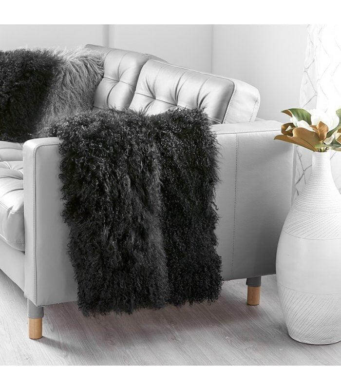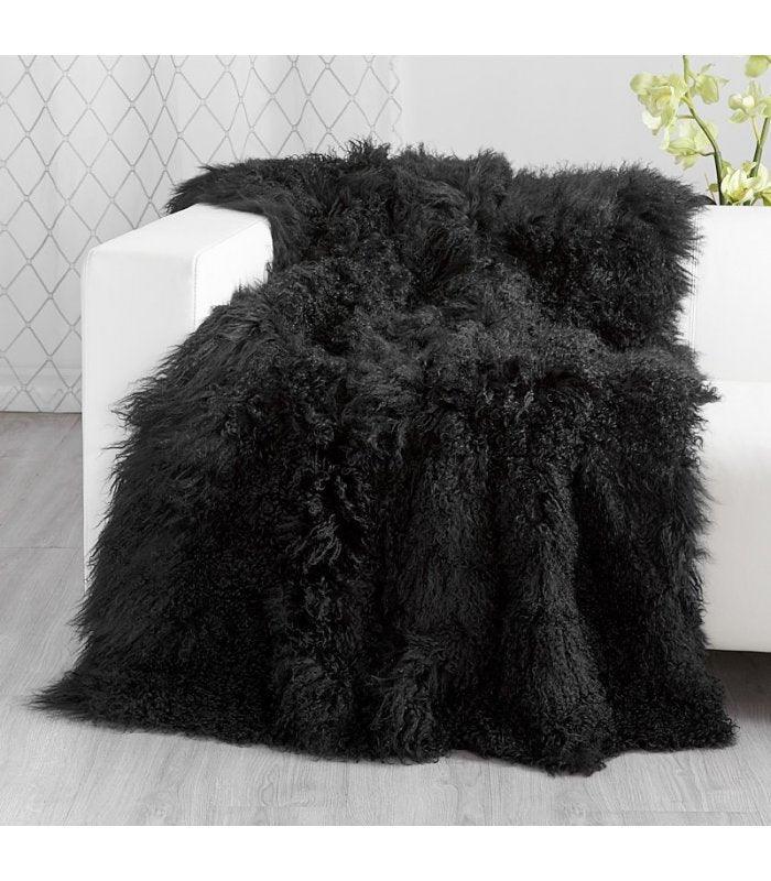Genuine Mongolian Fur Black Super King Blanket 250cm