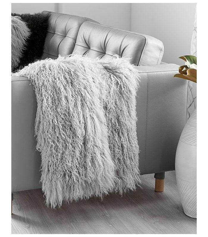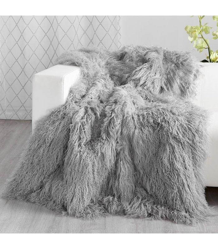 •  Genuine Mongolian Fur Black King Blanket 250cm