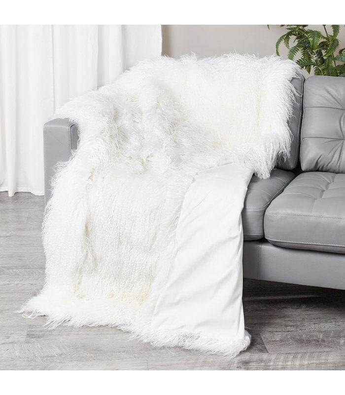 Genuine Mongolian Fur White King Blanket 220cm
