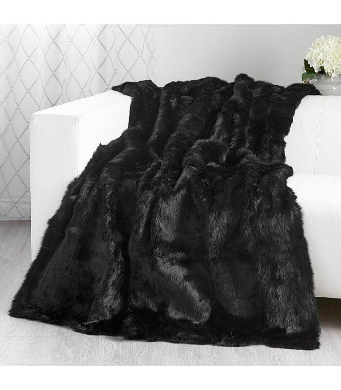 Genuine Rabbit Fur Black Queen Blanket 200cm
