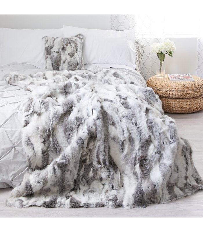 Our ethically sourced natural rabbit hide blankets, in a combination of white and grey, are a luxurious decor accent for either the bedroom or lounge area. Also available in natural white, solid grey or brown hair, these sumptuously soft throw blankets feature the rabbit fur on one side with the reverse a soft matching complimentary tone velour.