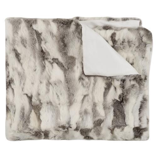 Genuine Rabbit Hide Blanket – White & Grey