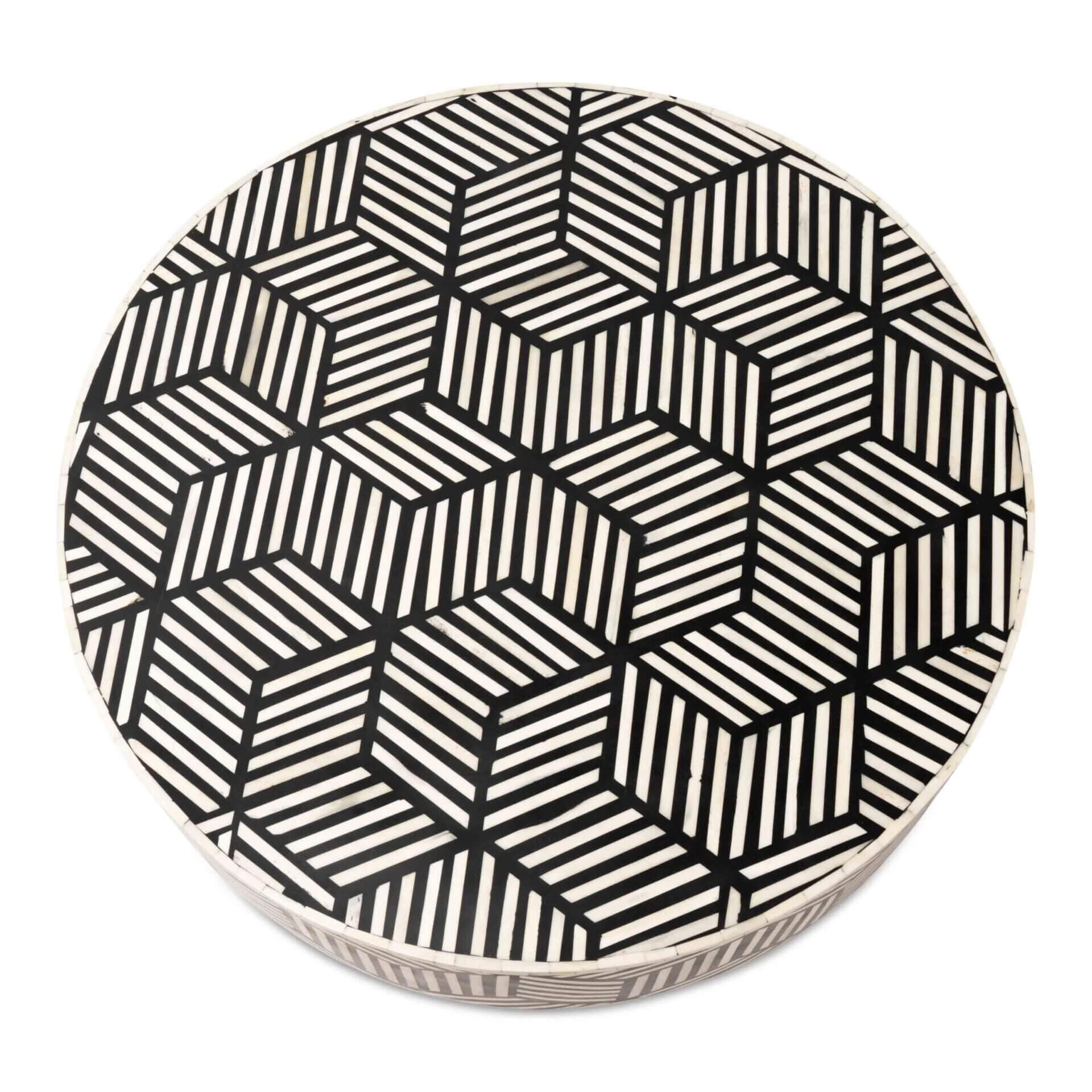 Eclectic and eye-catching, the exquisite Geo side table shows off a functional and artful design. The optically intriguing bone inlay pattern provides a perfect contrast to the warm brushed brass base to ultimately add a spark to your home.