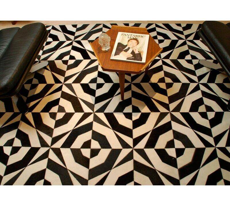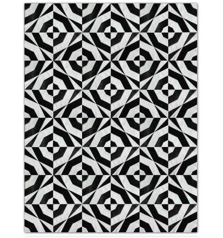 Our Geo Patch Hide Rug Design No. 314 is made using only premium, high quality hides, and can be customized in any size and shape.