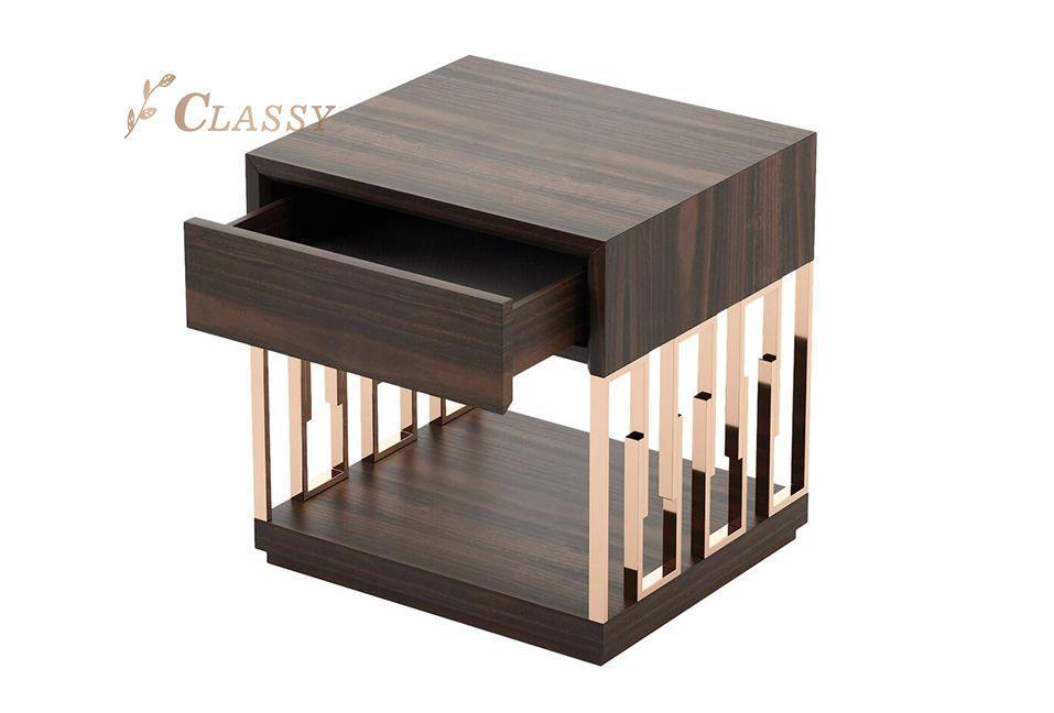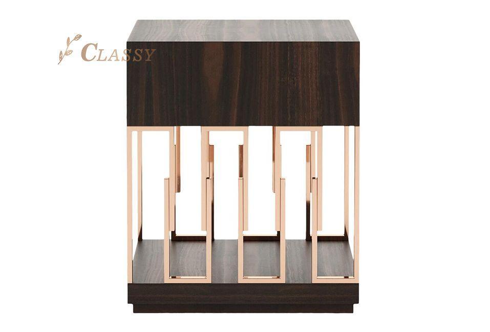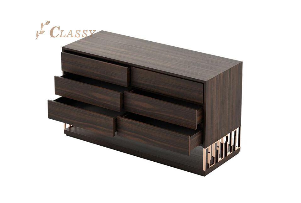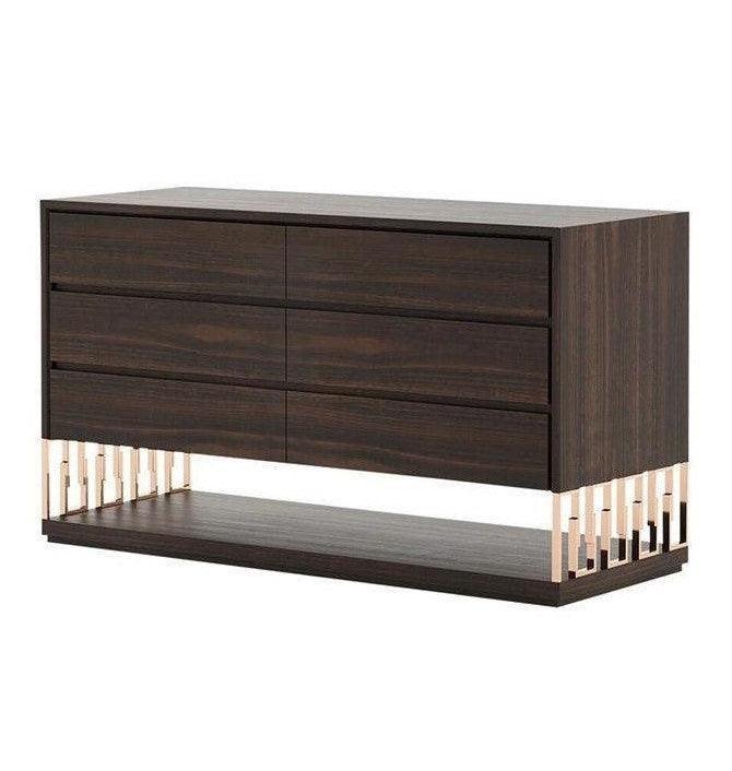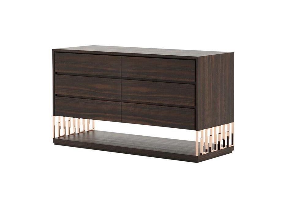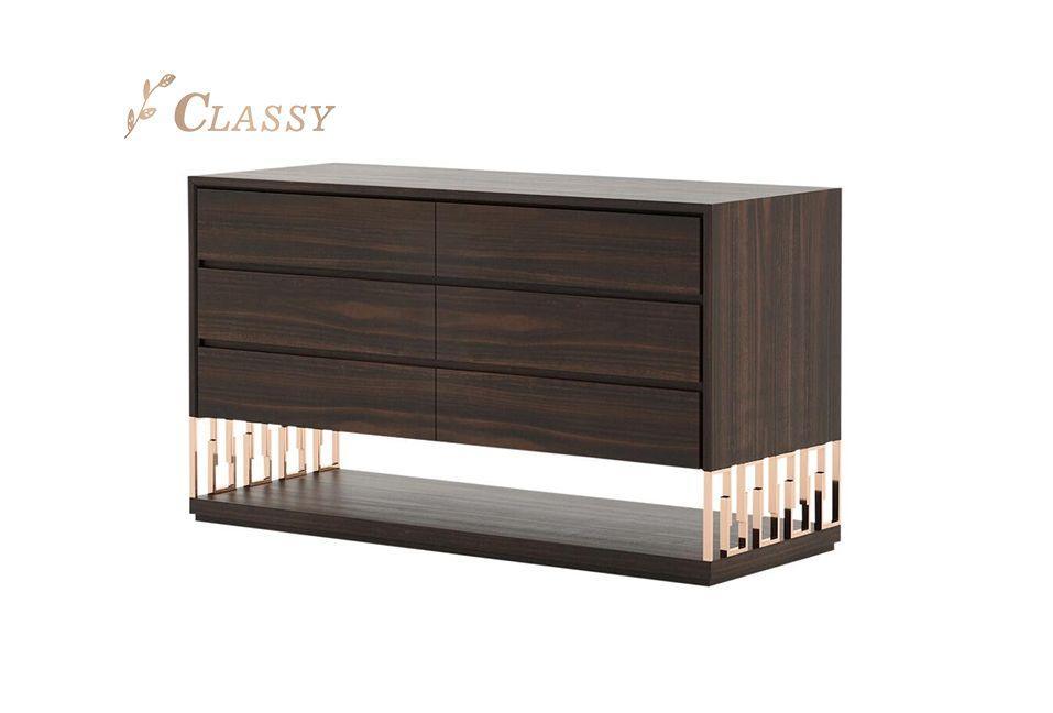 Germain Walnut Brass Dressing Cabinet 150cm. Brass base hold side cabinet with single drawer, with solid wooden base and top in luxury and classy design.