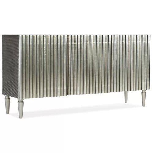 With a look of natural elegance, the Antique Nickel Console has a shimmery finish in Nickel finish over solid hardwood . With a textured front, the console has four doors and one fixed wood shelf behind each set of doors with soft close hinges. Shelves are removable, and there’s a ventilated background.