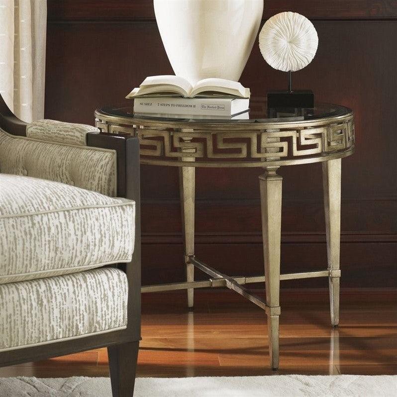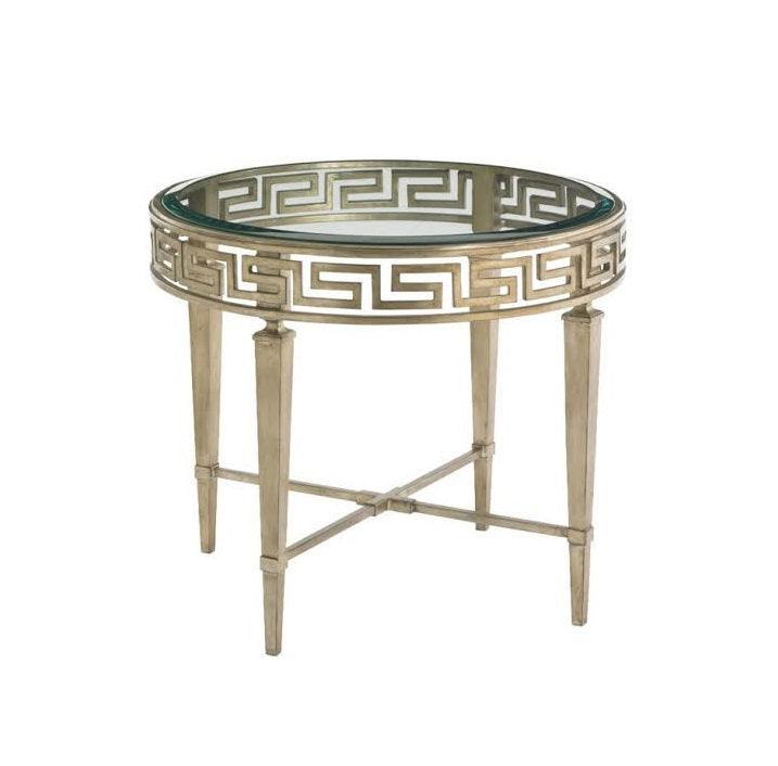 Our Gianni Collection Greek Key end table embodies a view of luxury living that is beautifully understated and approachable. This end table features an exquisite Greek Key design on the apron, antique gold leaf iron metal base with a glass insert, and elegantly polished edges. Our Greek Key end table is contemporary in style with a tasteful sophistication that is exactly the piece you need to add a touch of simplistic elegance to your home. Elegant Greek Key design featured on the Antique gold leaf finish iron metal base with beveled edge glass insert top, adorn this very reminiscent Art Nouveau, Art Deco period look.