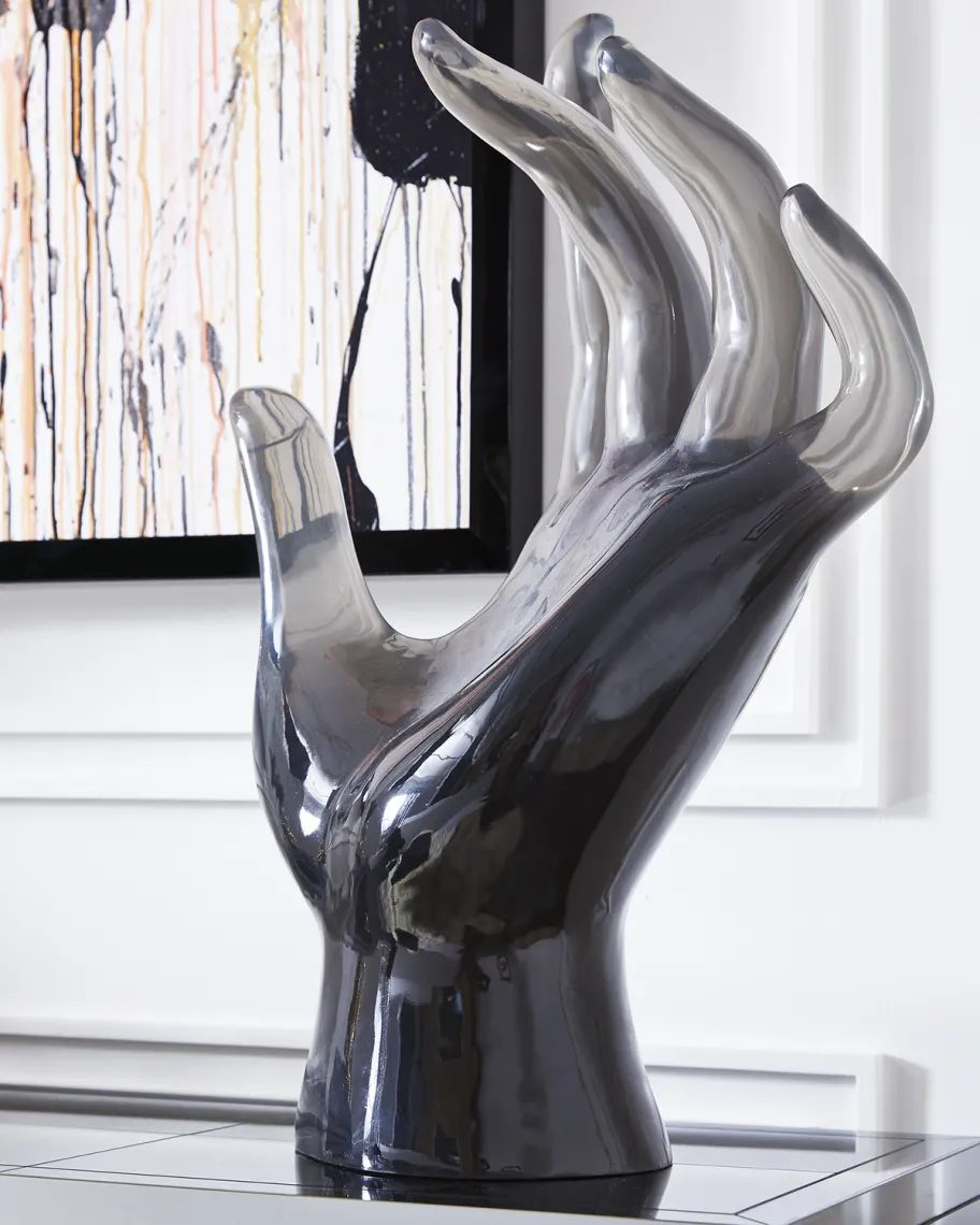Our Giant Acrylic Hand is perfect in an unused fireplace or sizzling atop your cocktail table. Our mesmerizing sculptures begin life in our design studio where they hand sculpt each model. The piece is then cast in acrylic and polished to perfection.