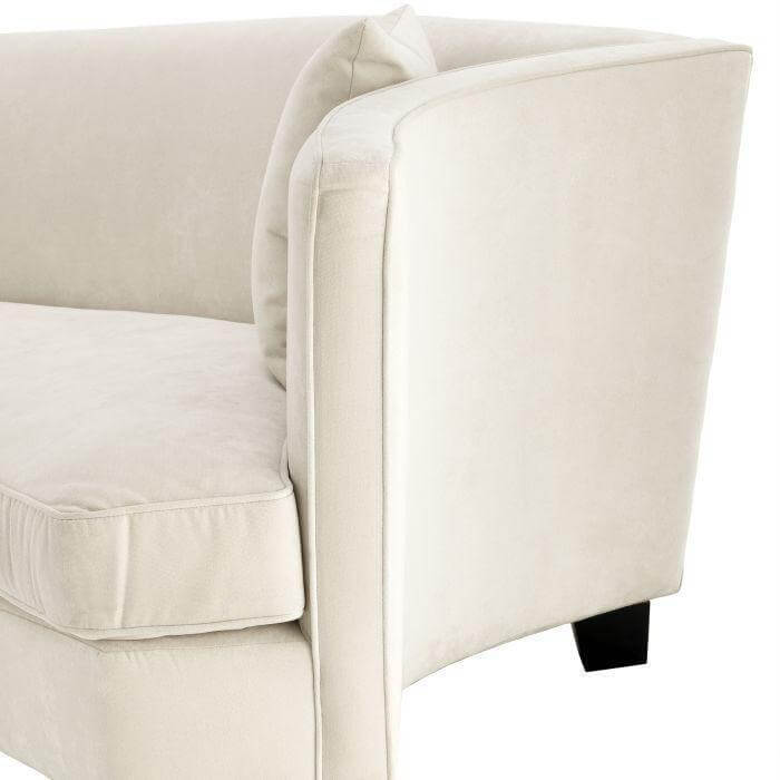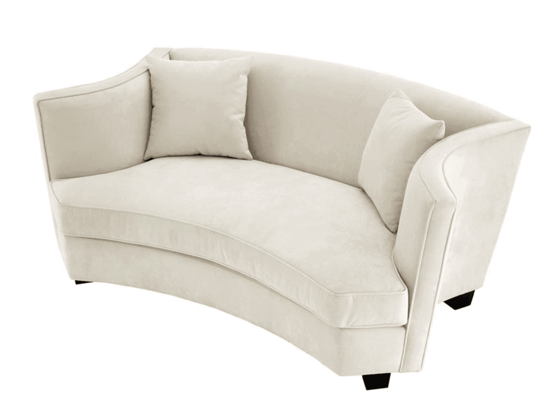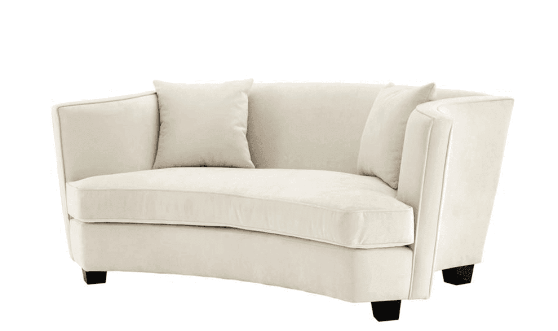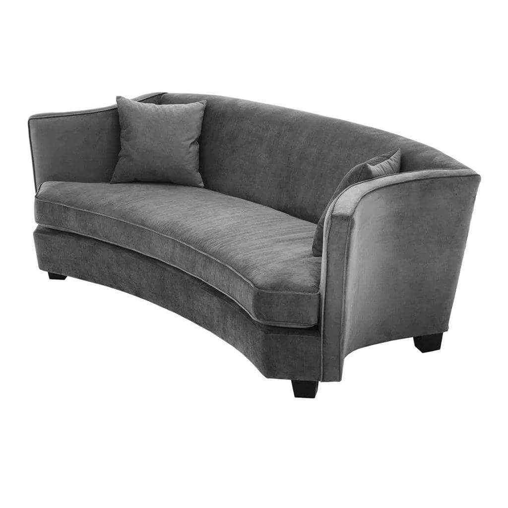 • Giulietta sofa upholstered in Granite grey velvet with feature curved sides