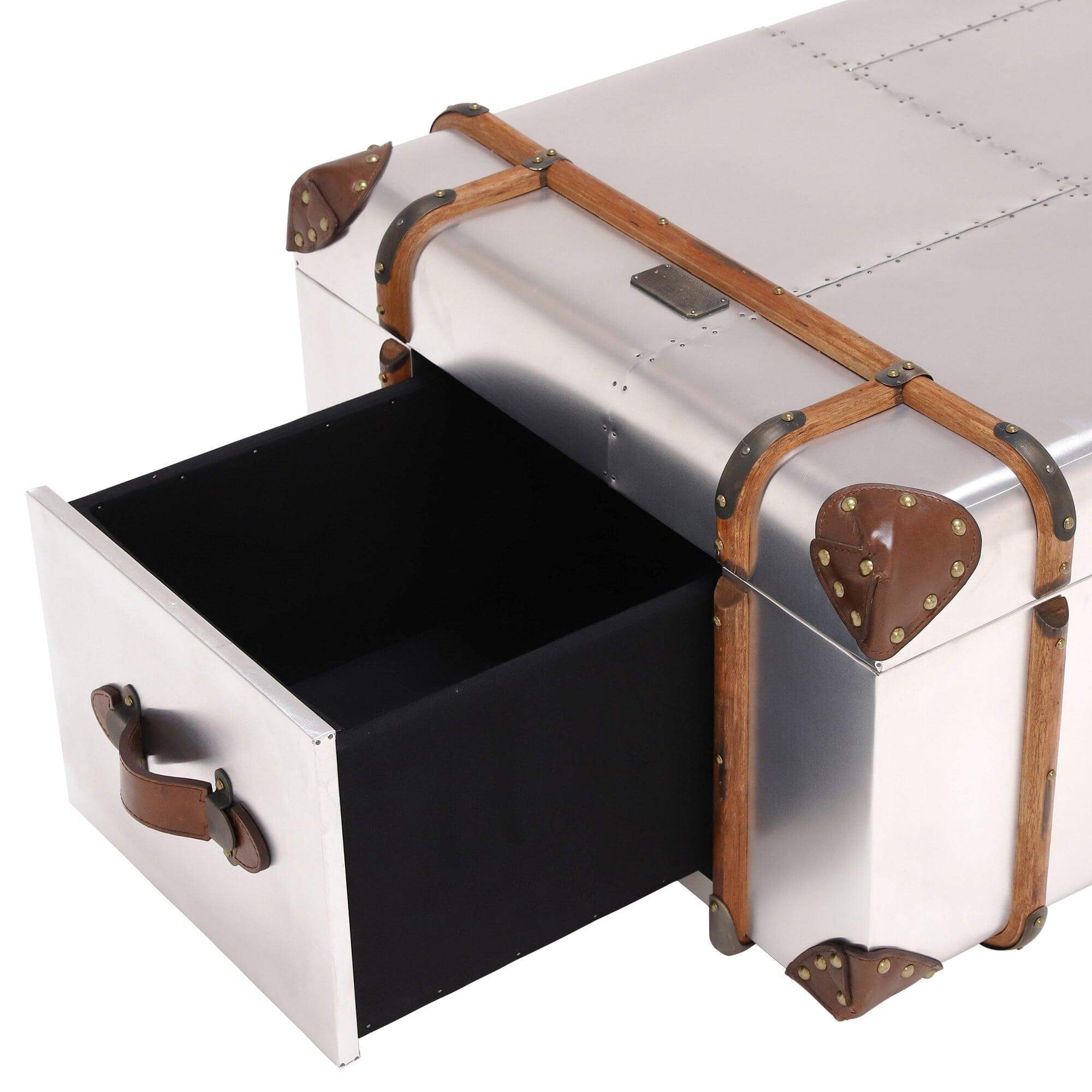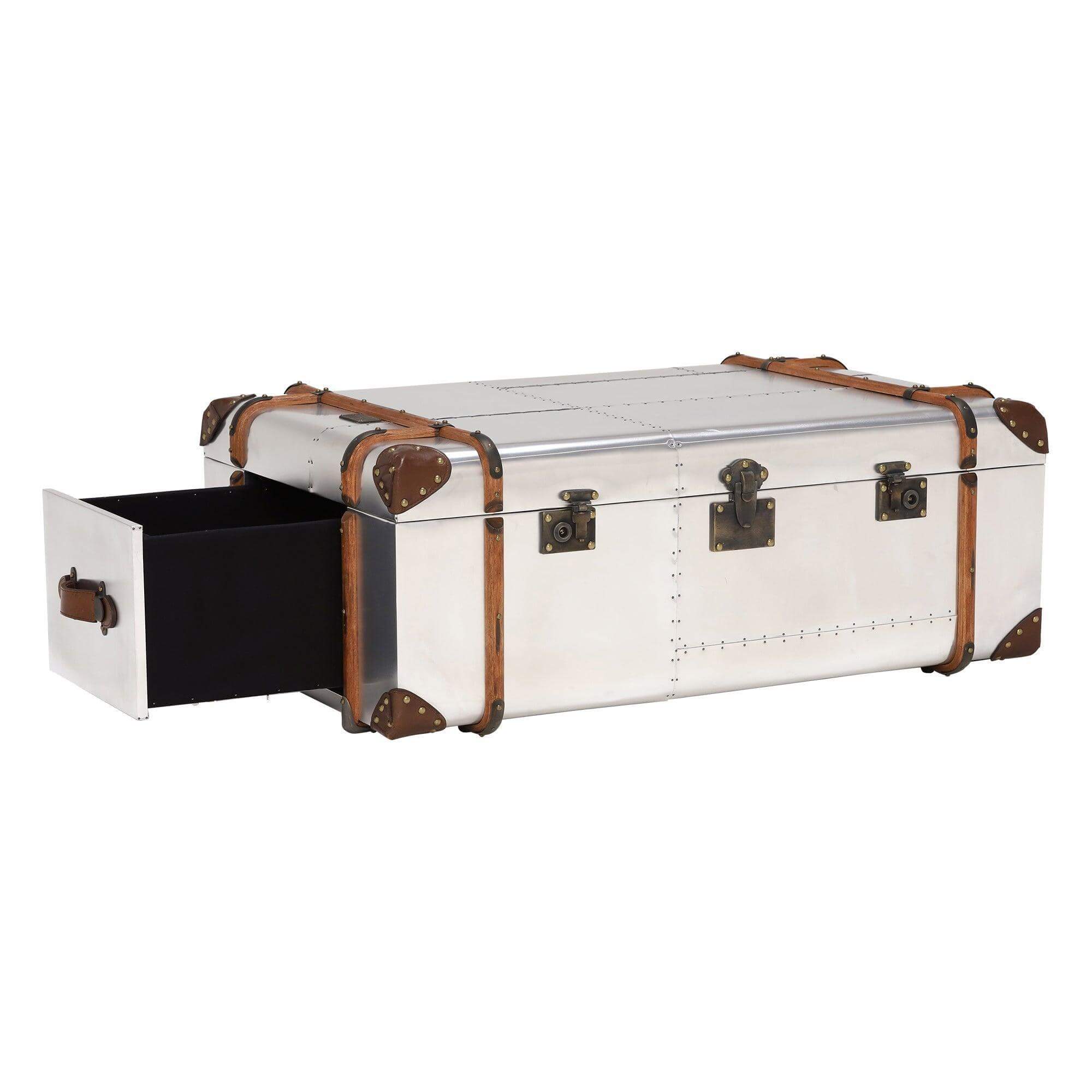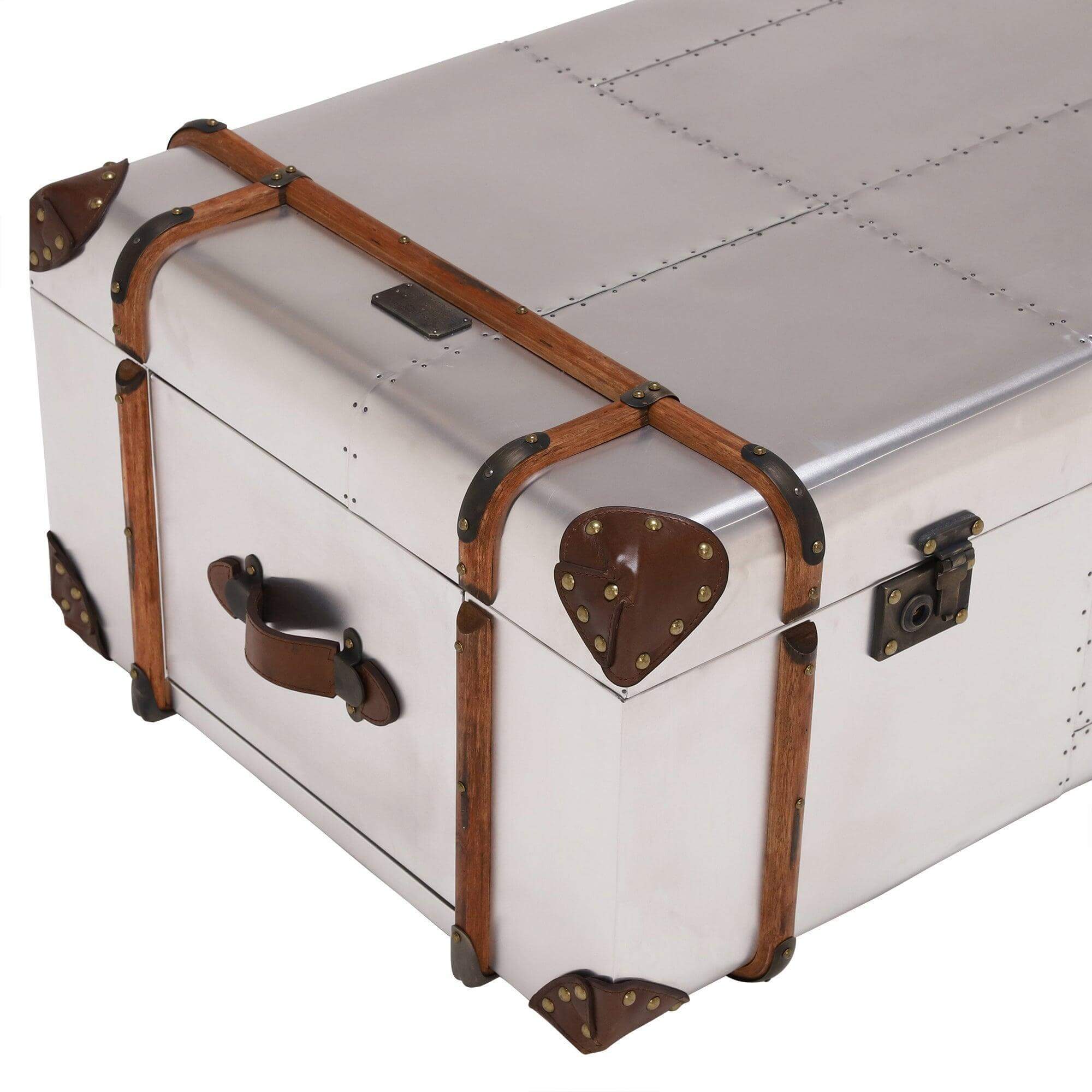 Globetrekker Aluminum Aviator style Leather Trunk