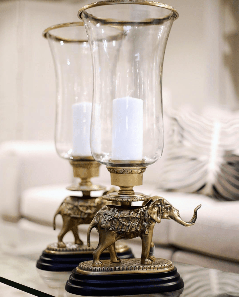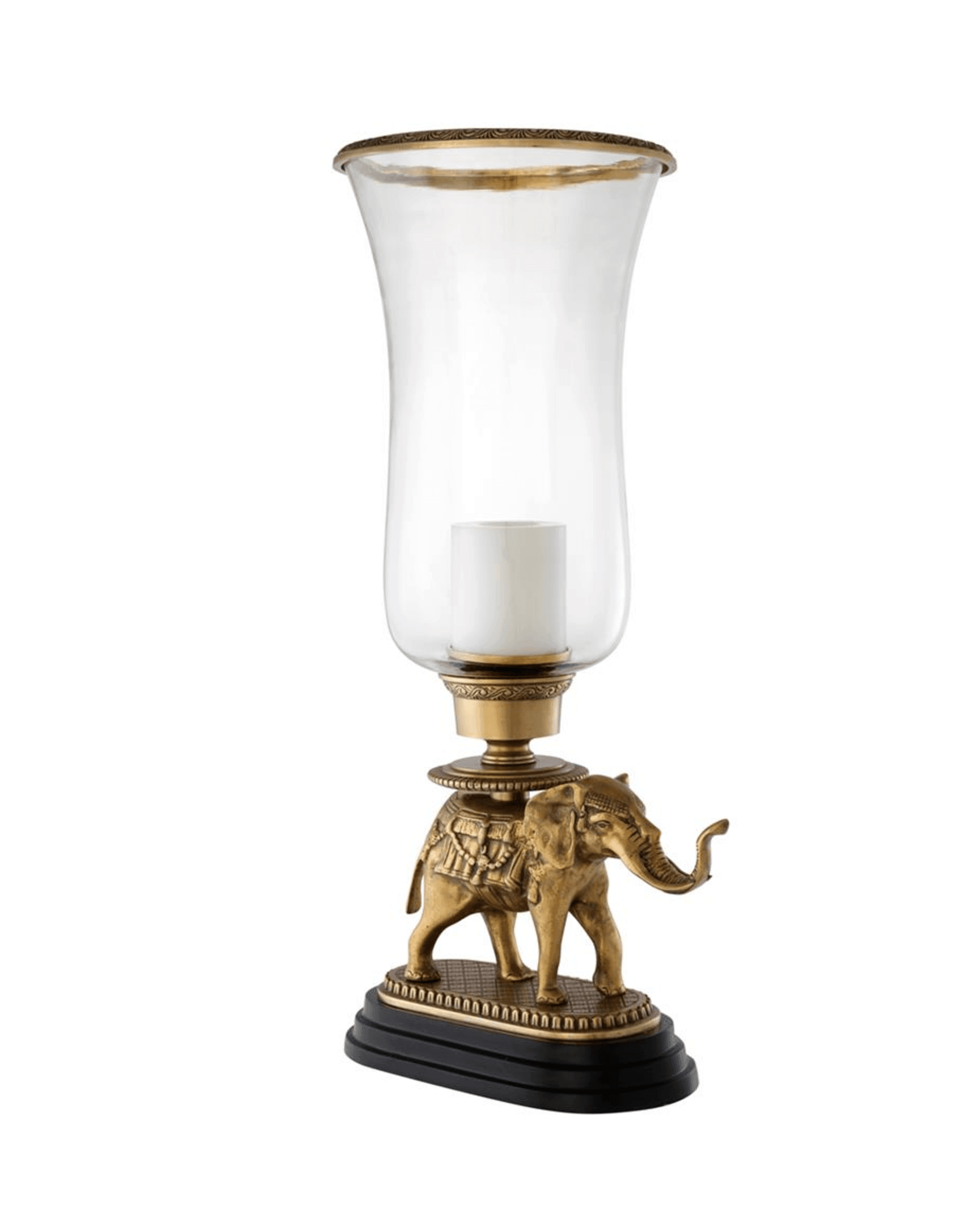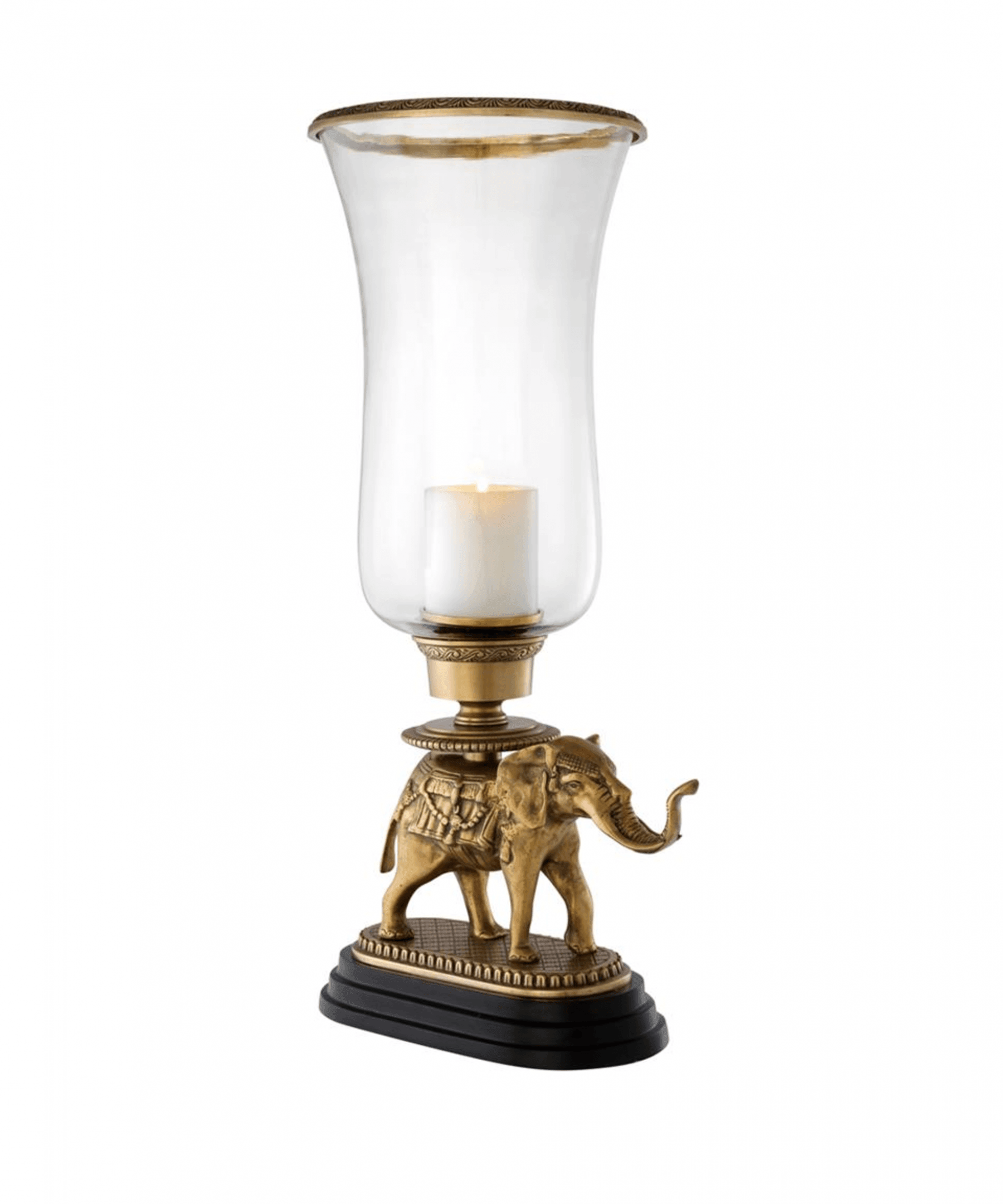• Vintage brass and clear glass elephant hurricane