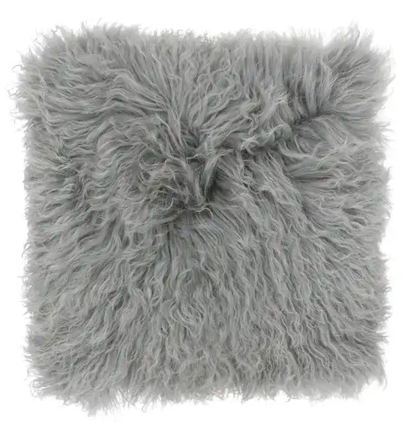 Our luxurious Mongolian sheepskin cushions look and feel amazing. Super long curly face with faux suede back. Comes with inner cushion