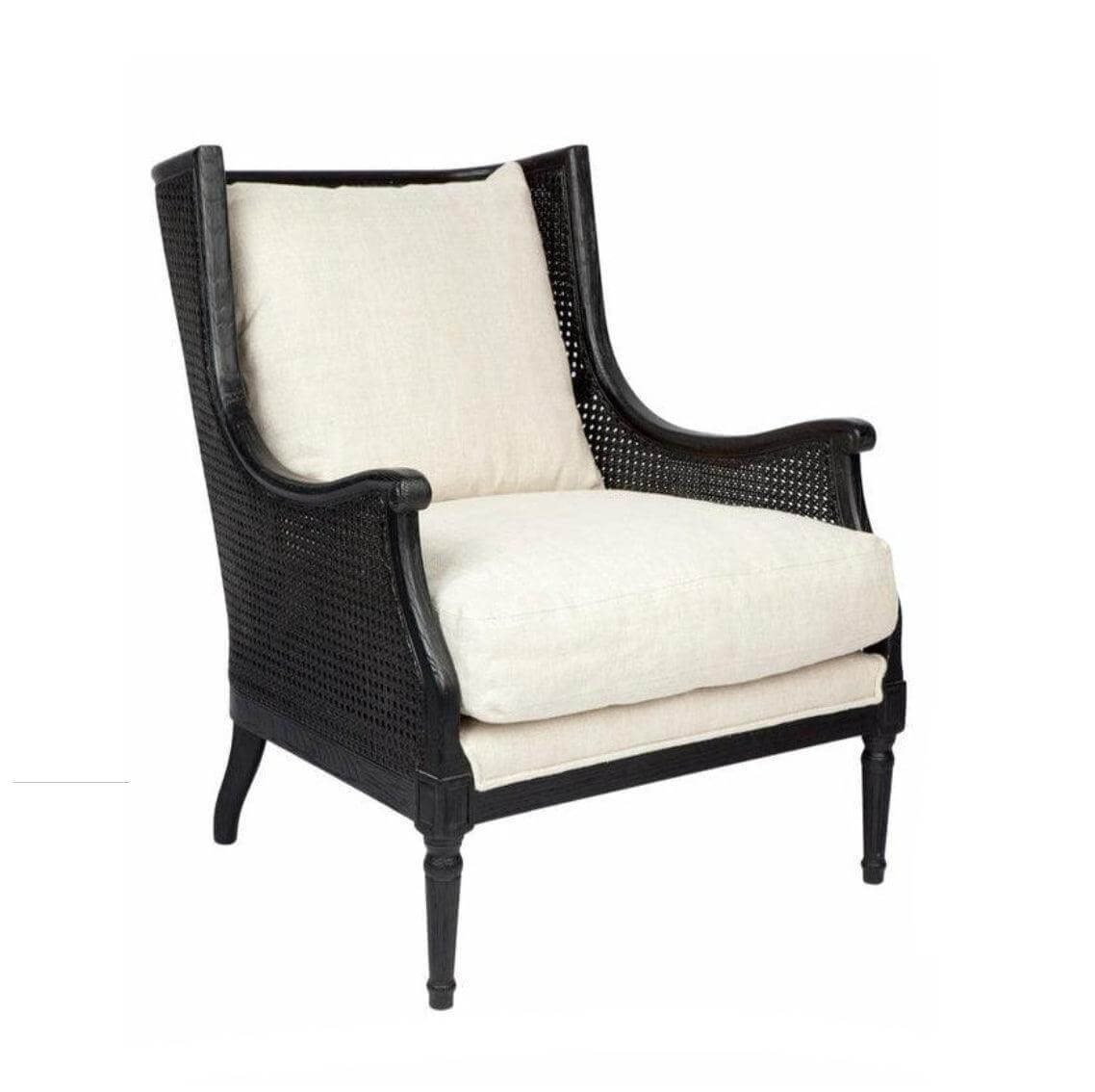 Hampton Black Oak Rattan Wing Chair