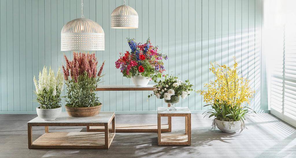 • Hampton Garden Centrepiece Arrangement in White Planter