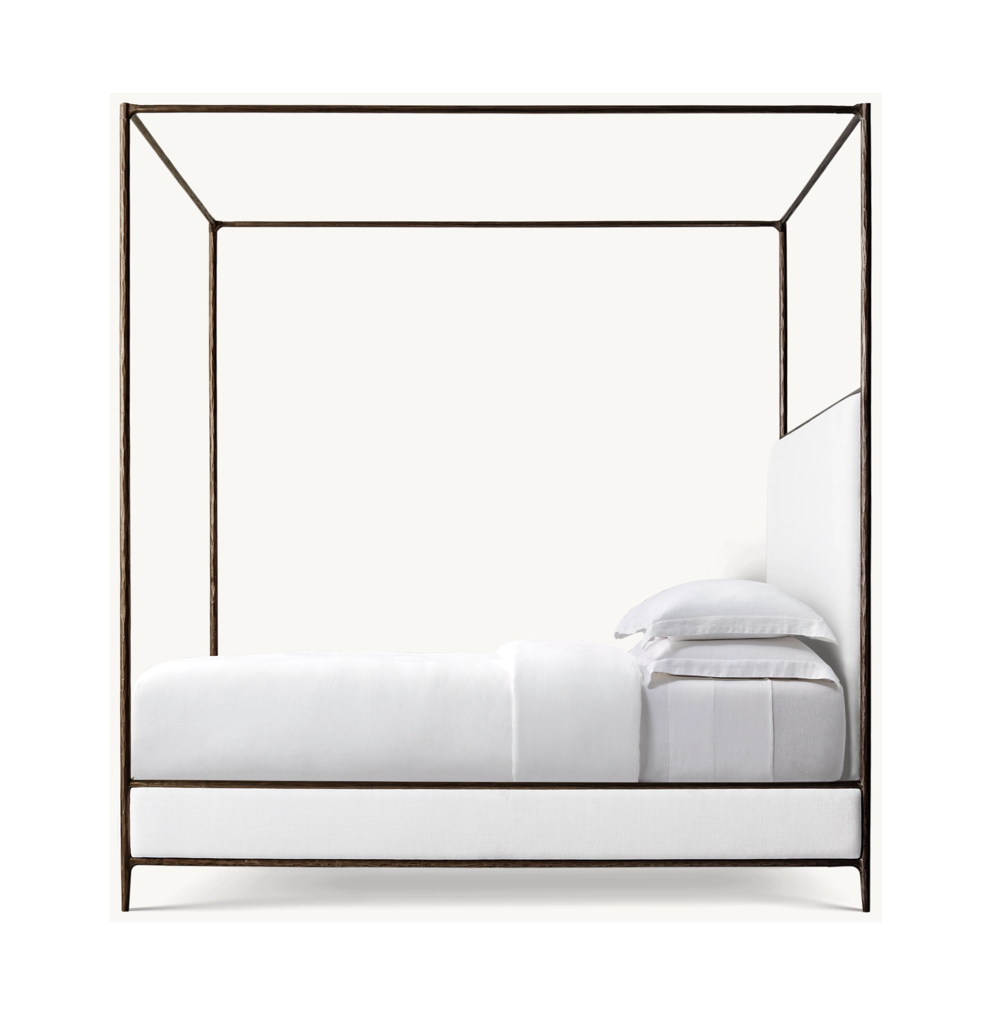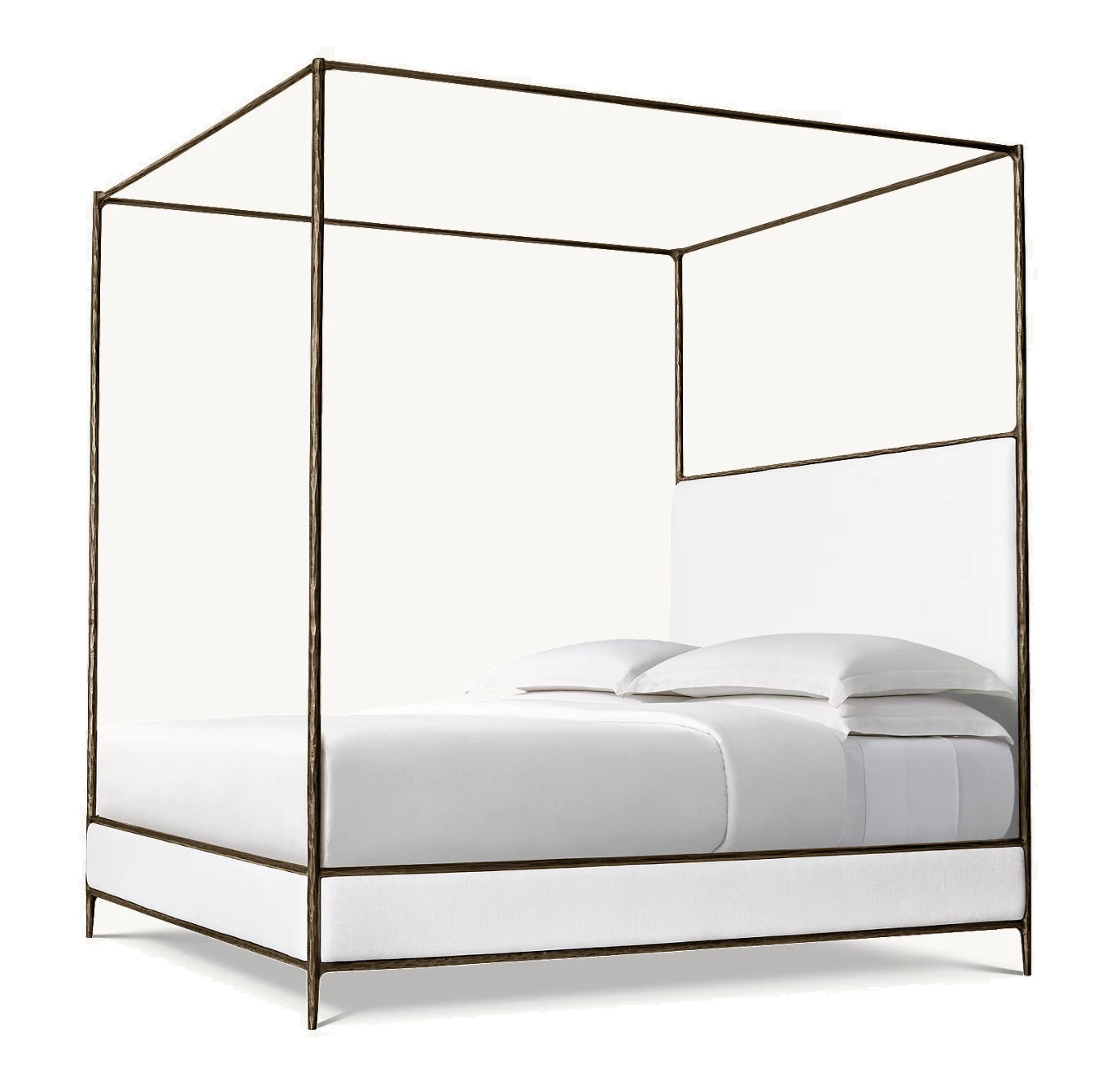 Harlow White Linen Forged Bronze King Canopy Bed