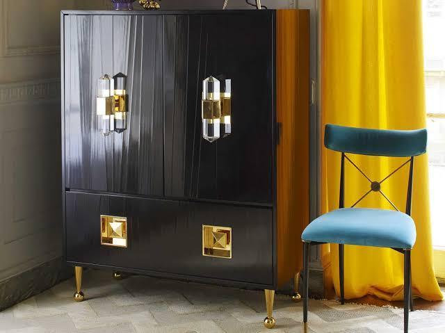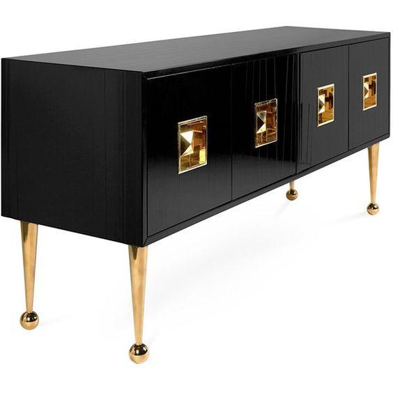 Hedonism Black Lacquer Cabinet with Gold Acrylic handle