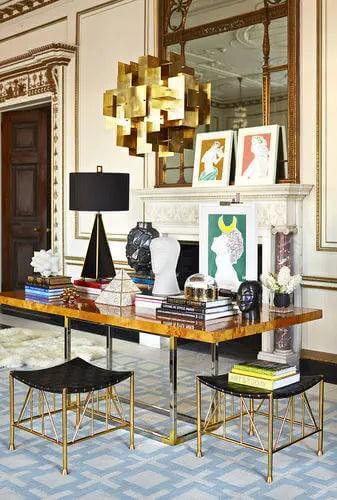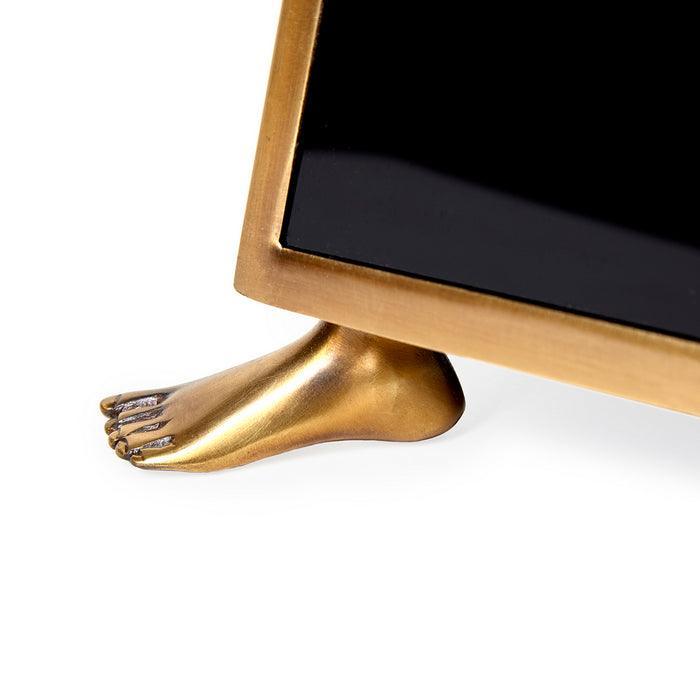 With a brass foot sculpture at each corner
