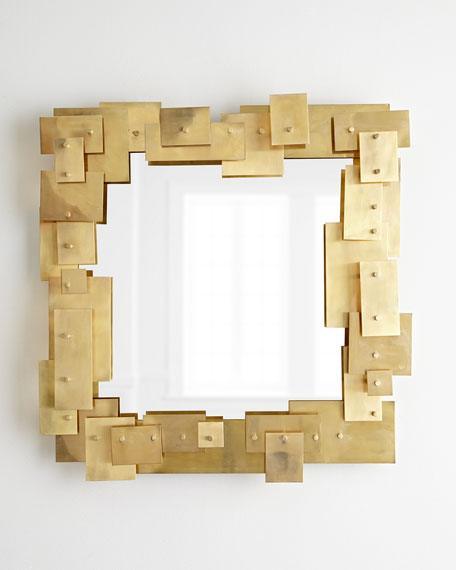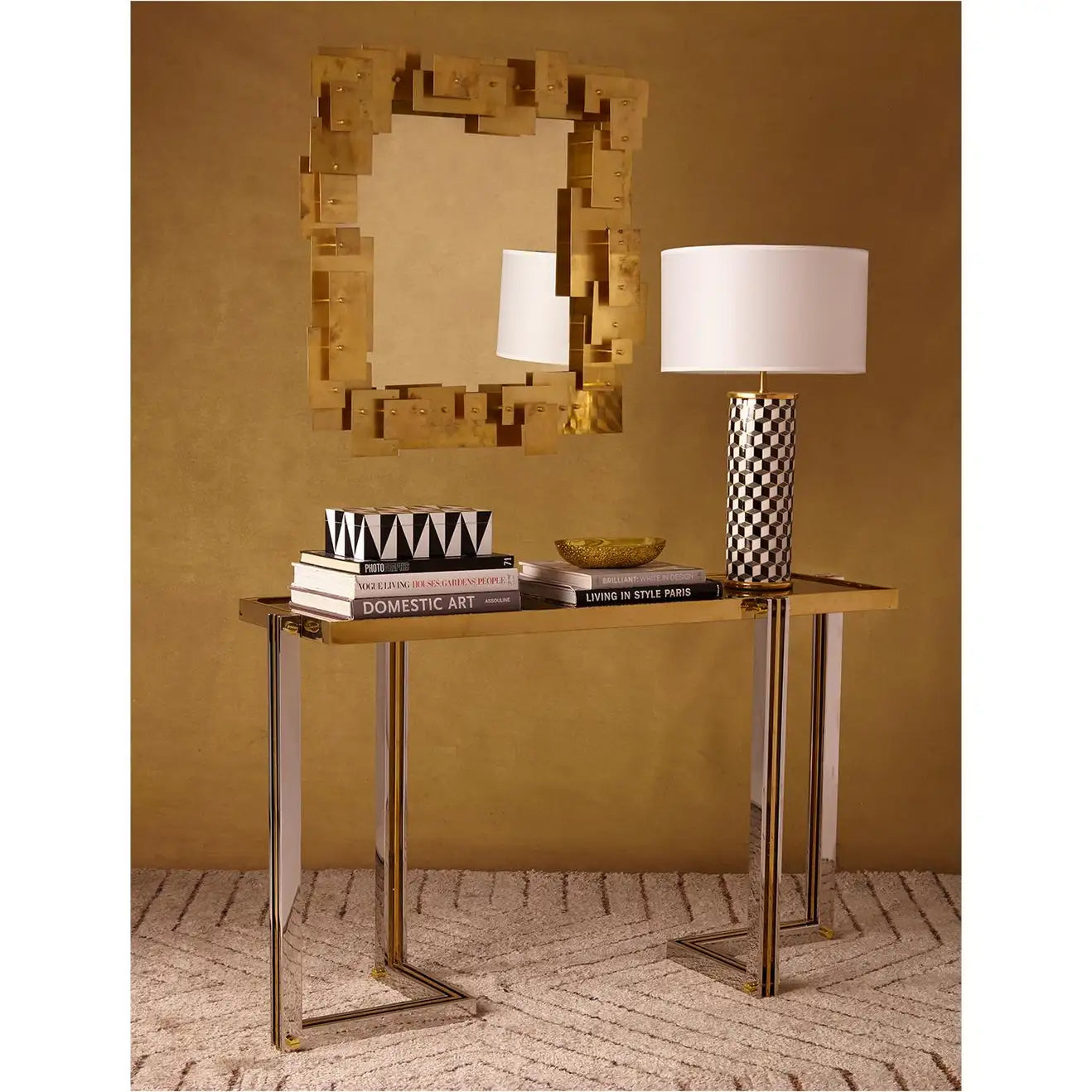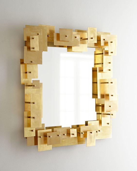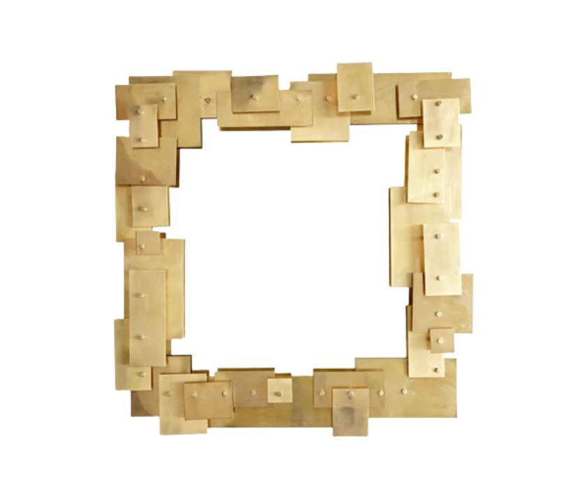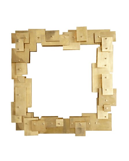 70s Italian meets sleek kinetic modernism. The ultra-luxe Puzzle Mirror is composed of interlocked, individually tooled brass panels to create a stunning architectural structure. Add a dose of gravitas and Brutalism to a foyer, or hang over a sleek credenza in a seriously chic dining room.