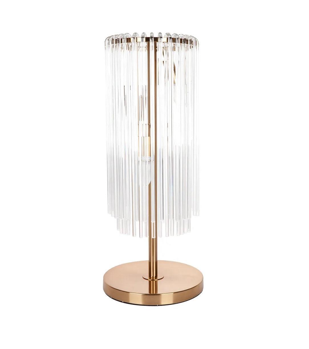 Simply spectacular, hand crafted crystal glass rods cascade effortlessly over a plated nickel frame, hanging in modest harmony. A slender take on the popular Heston pendant, the Heston table lamp provides a delicate diffused glow as the play of light is reflected through its elegant crystal glass rods. Referencing the decadent Art Deco era, the Heston table lamp offers a modern interpretation of timeless glamour.