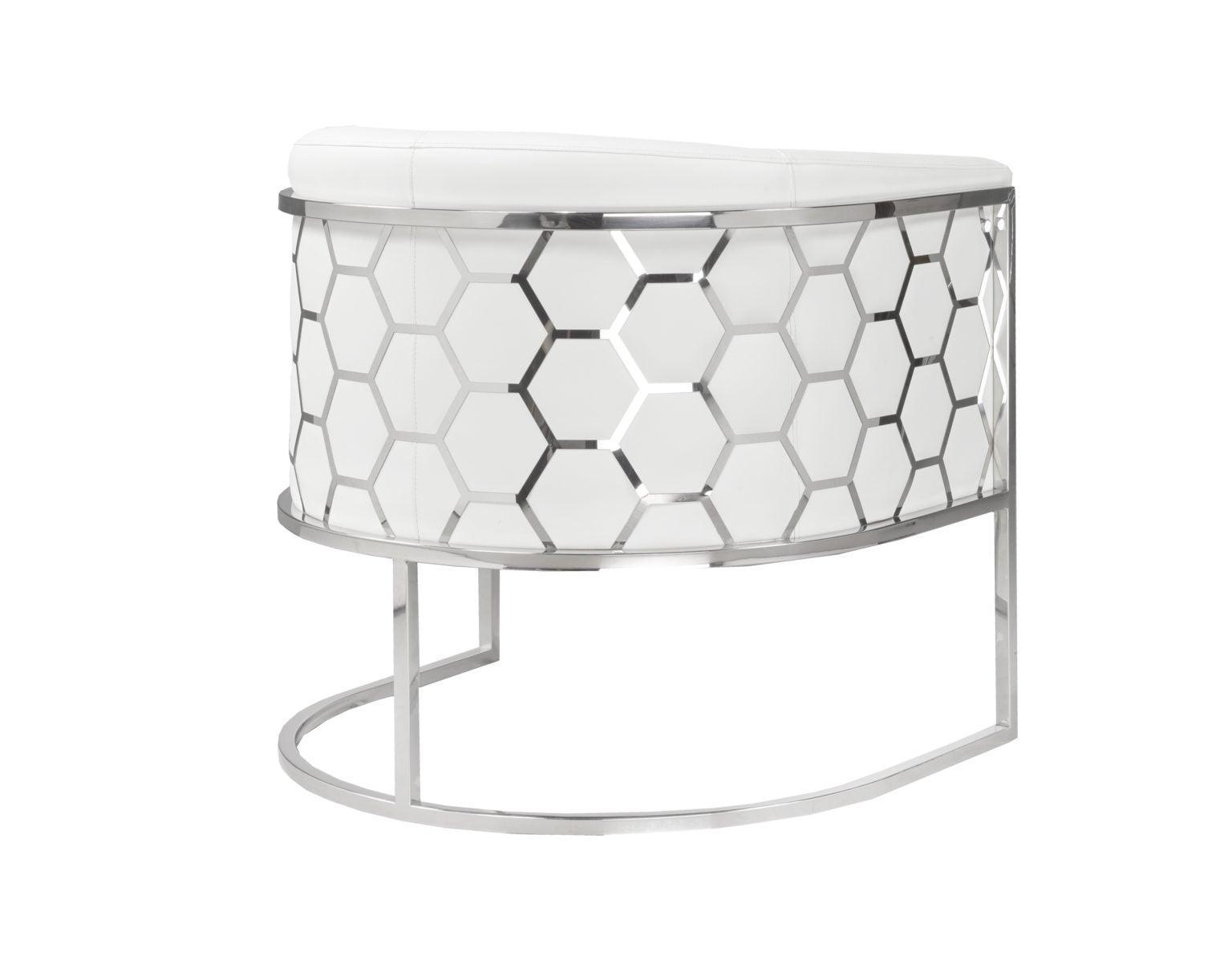 Hive Chrome Honeycomb White Velvet Occasional Chair