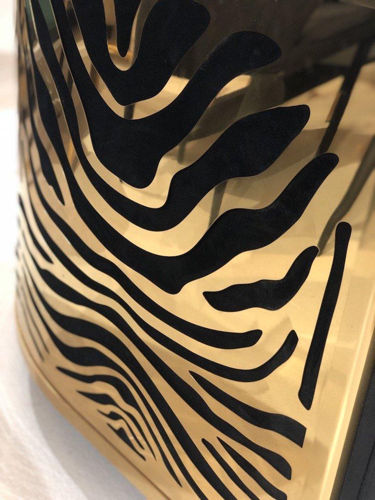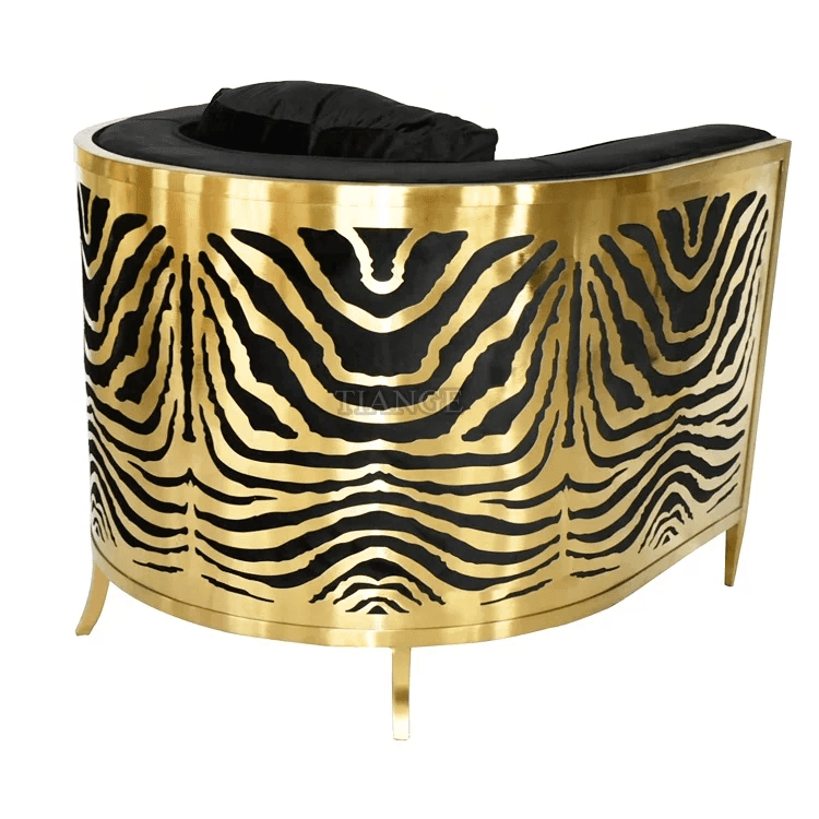 It takes skilled artisans may hours to manufacture the Zebra sofa, each sofa is manufactured by hand by traditional artisans. This occasional chair will certainly enhance any living room, office or lounge as a statement piece that will add tremendous value to the setting. Stainless steel with polished Brass finish.