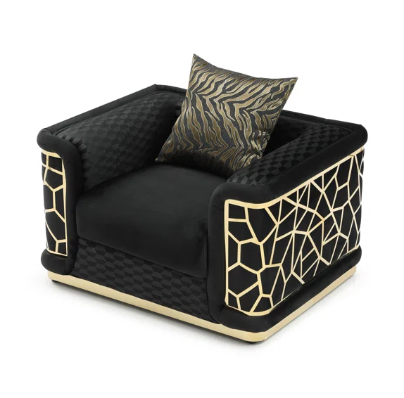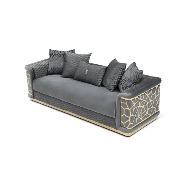 Icebreaker Black Velvet Quilted Gold Sofa