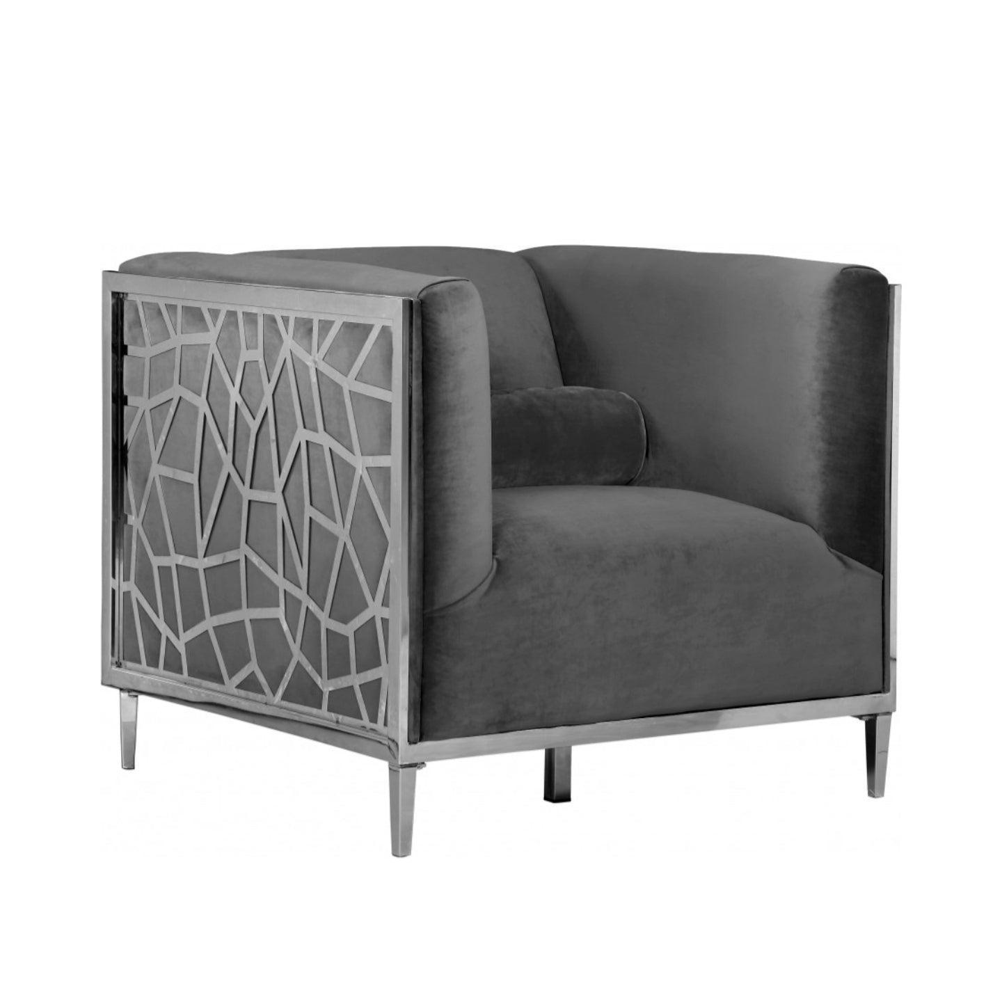 Icebreaker Grey Velvet Nickel Armchair Sofa