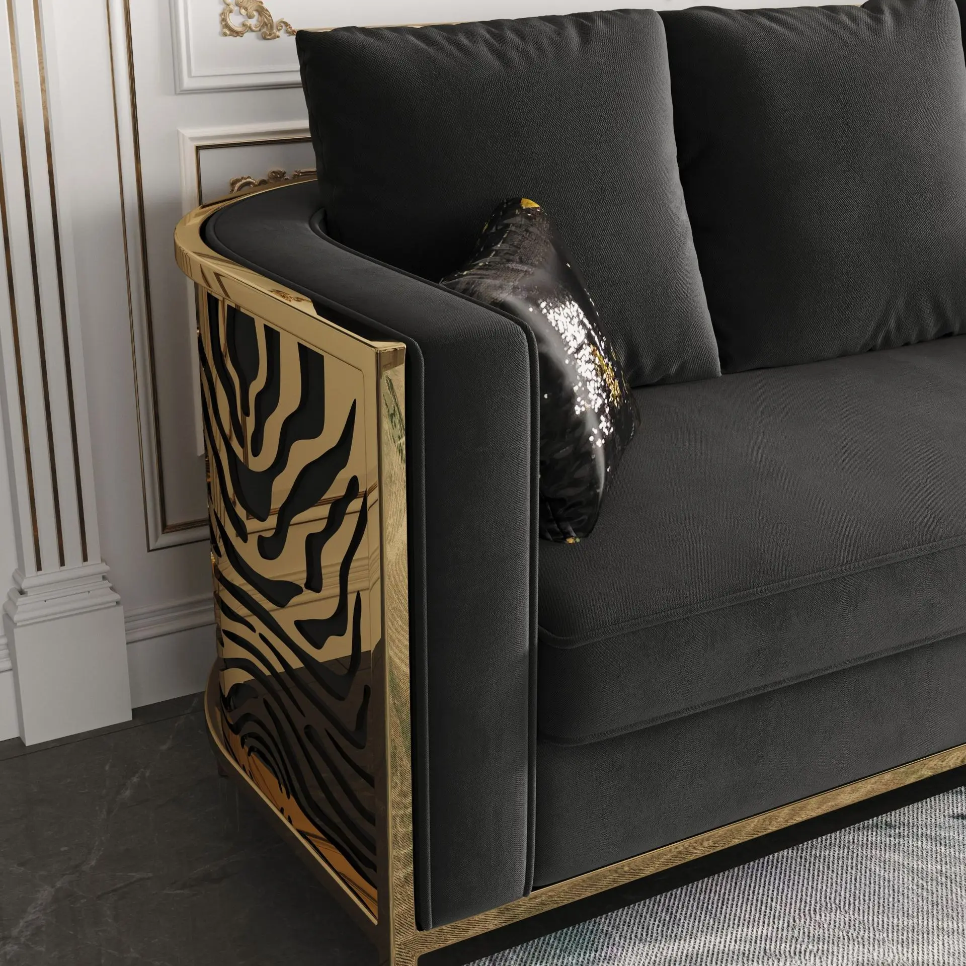 Icebreaker Black Velvet Gold Zebra Armchair