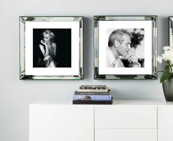 One of our ever-popular archive prints, this photograph features American cultural icon James Dean – the symbol of teenage disillusionment in the 1950s. His characteristic frown and unruly dress sense are edged by a smart reflective frame.