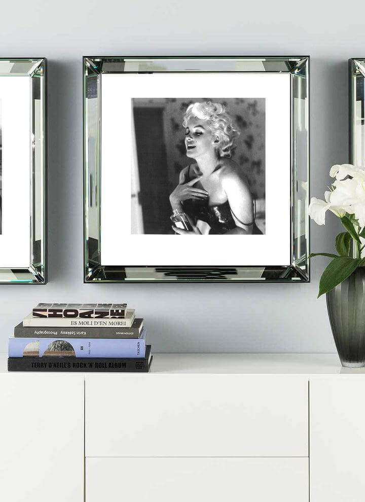 One of our ever-popular archive prints, this photograph depicts the world-famous American sex symbol, edged by a smart reflective frame.