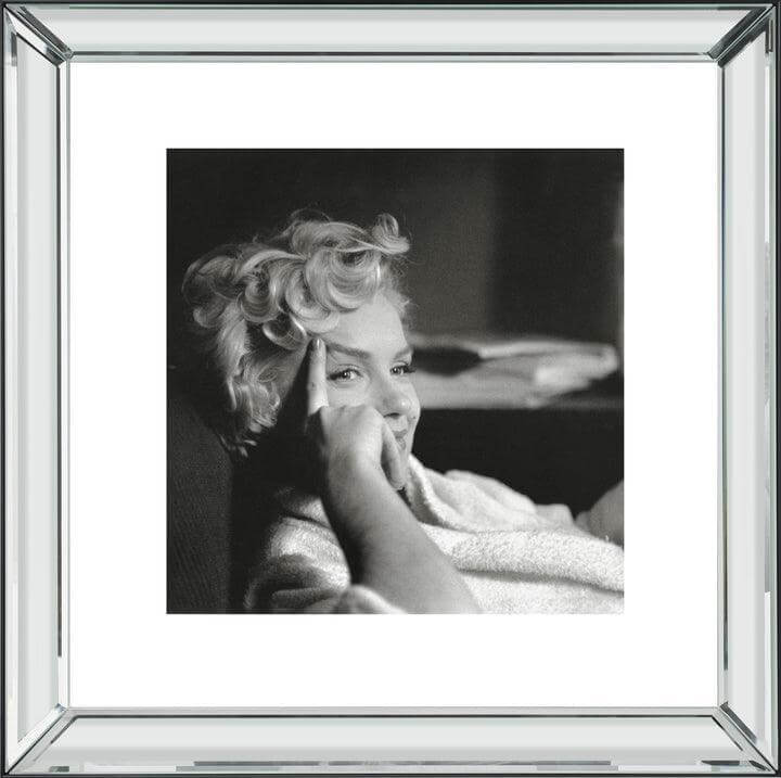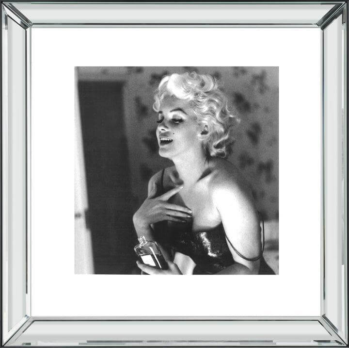One of our ever-popular archive prints, this photograph depicts the world-famous American sex symbol during a public endorsement of her favourite fragrance, edged by a smart reflective frame.