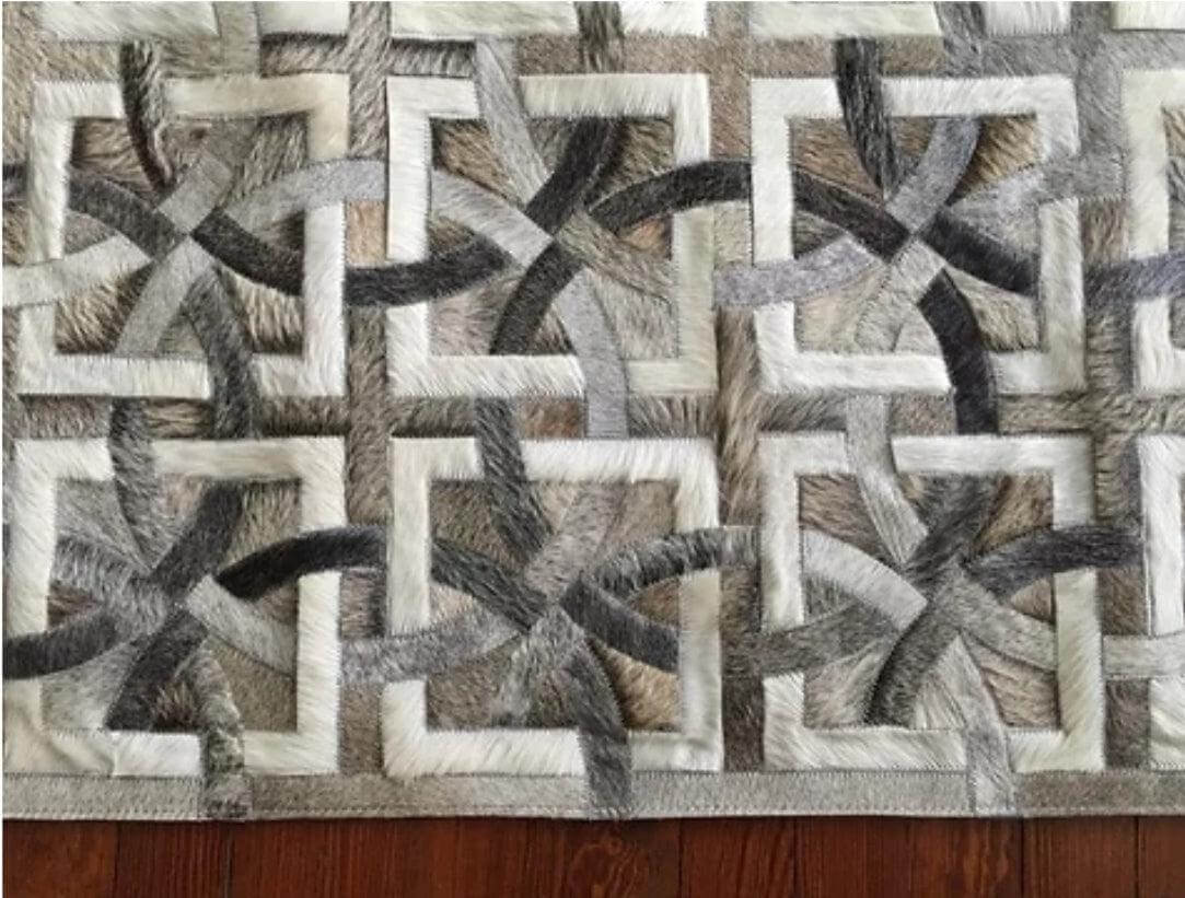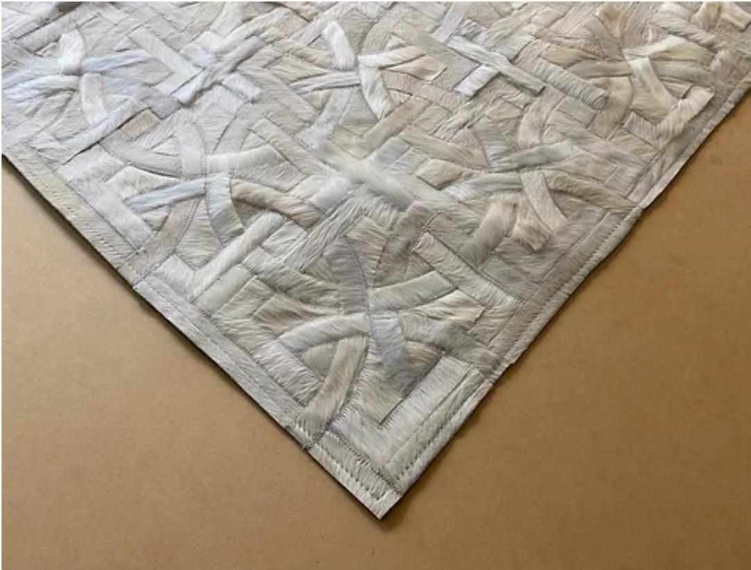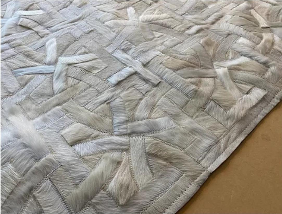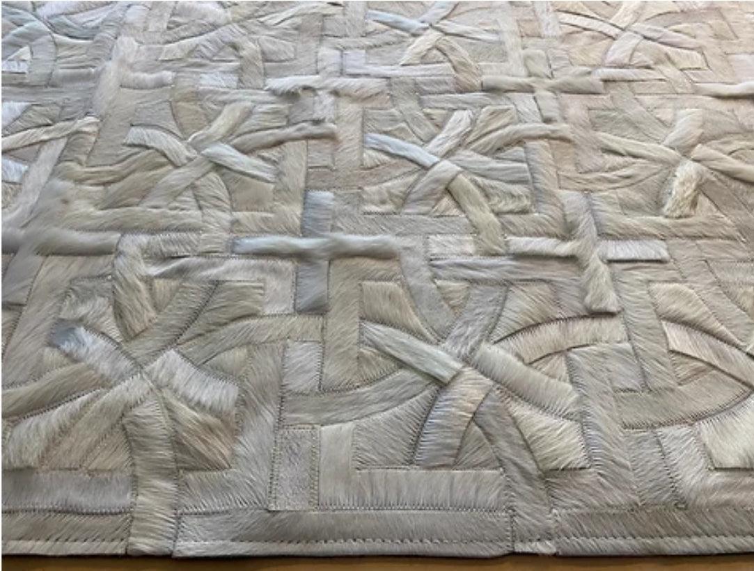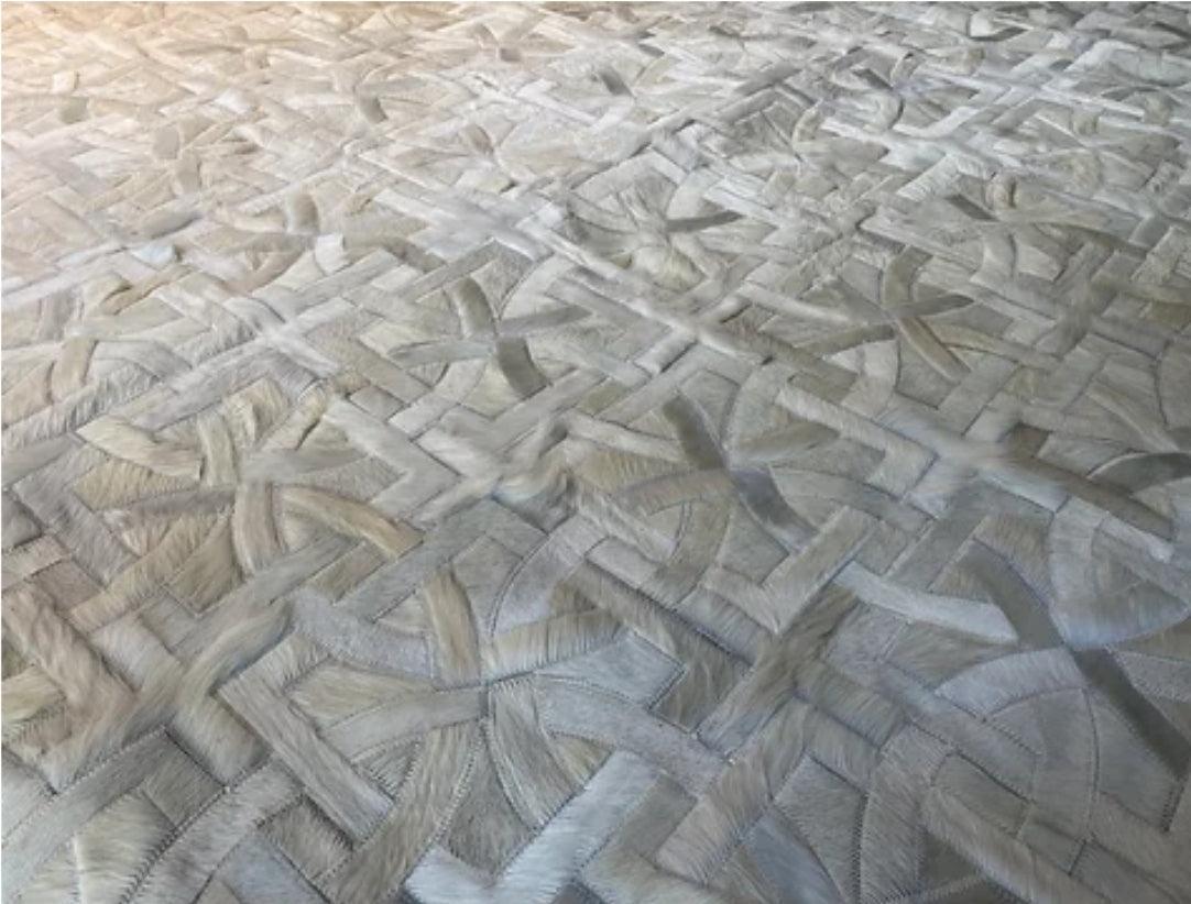 Complete your luxurious home with a classic, timeless and always fresh pattern. Using only ethically sourced high quality natural hides and crafted exclusively by exceptionally skilled leather experts, our cowhide patchwork rugs are finished with subtle and resistant zigzag stitching. This durable leather area rug keeps its natural soft suede on the back, giving it incredible grip to your floors without an under pad. Our Imperial Beige Cream Brazilian Cowhide Rug is made using only premium, high quality hides, and can be customized in any size and shape.