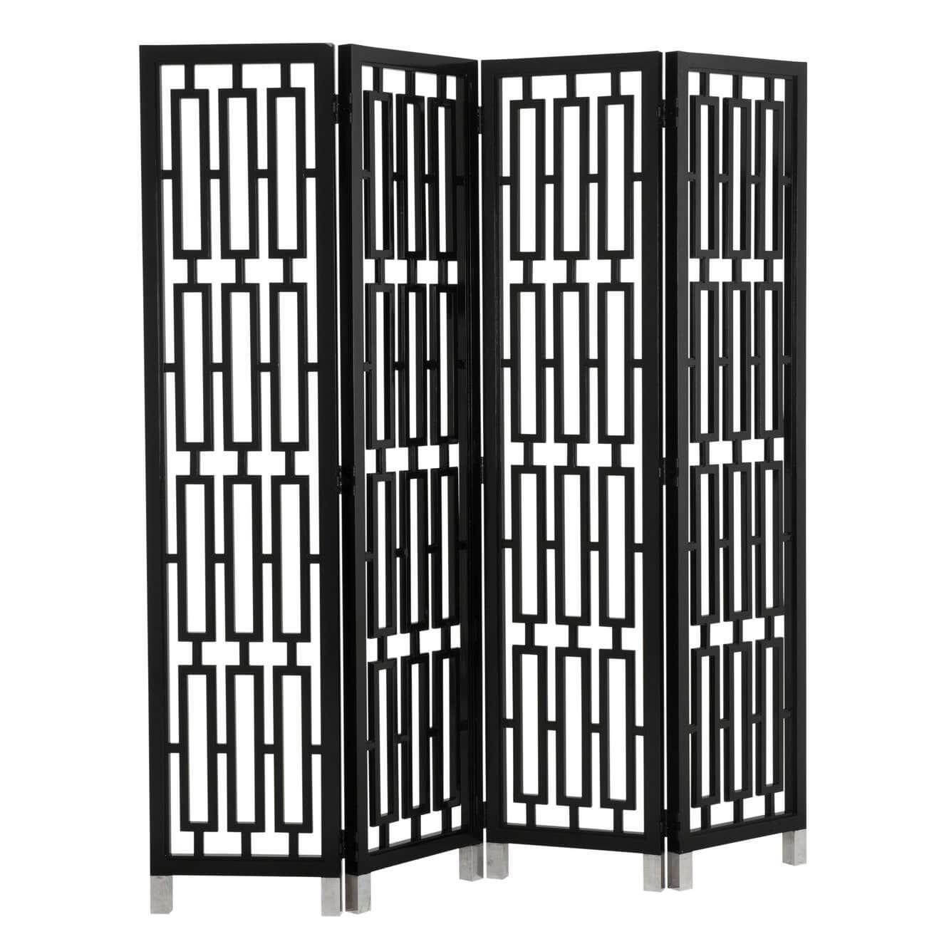 • Black finish geometric design folding screen
