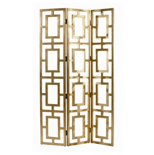 This Stunning Imperial Quadrant Dressing Screen/Room Divider is Finished In Polished Gold (Metal) 3 Panel. Our Polished Gold Dressing Screen Is A Striking Piece For Your Bedroom Or Living Area. The Fabulous Cut Out Design Adds Instant Colour And Sparkle To A Dull Or Lackluster Space.