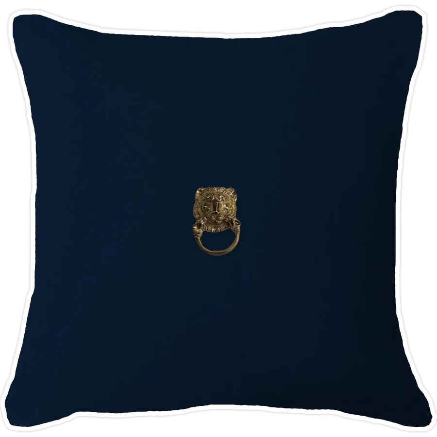 Imperial Lion Navy White Linen Cushion
