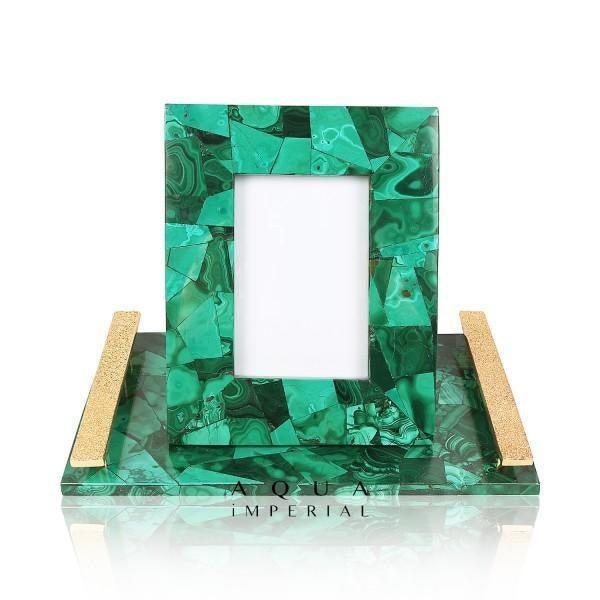 | Precious Stone Name | Malachite With Golden Handle Tray Set |