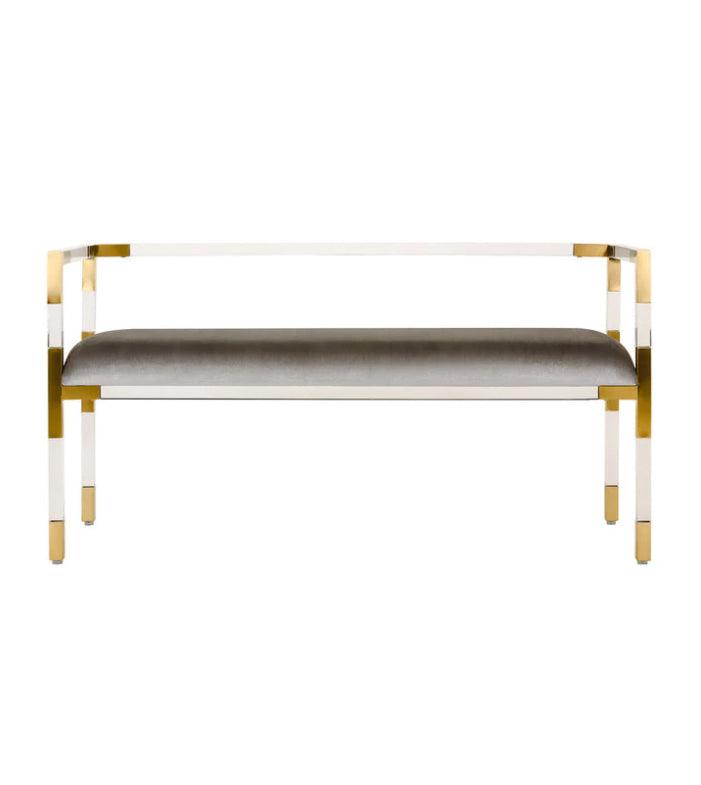 Jacques Grey Velvet Lucite Brushed Brass Bench