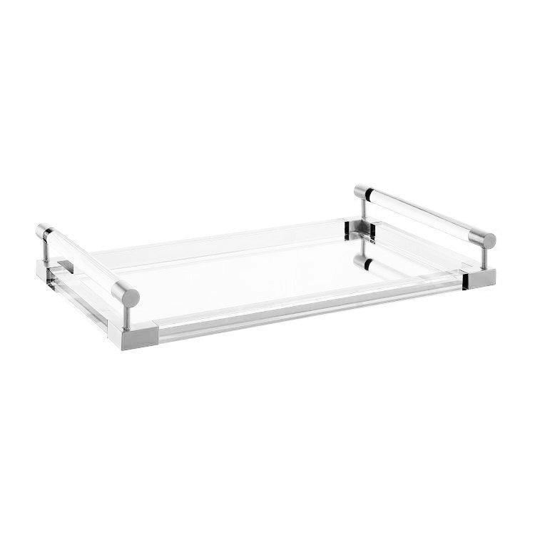 Jacques Lucite Polished Brass Mirror Serving Tray